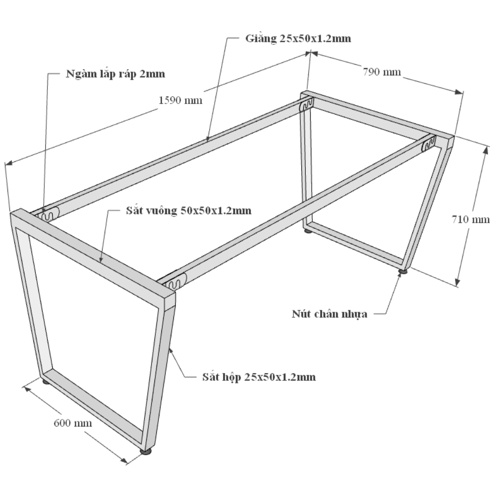 Bàn làm việc chân sắt lắp ráp 80x160cm