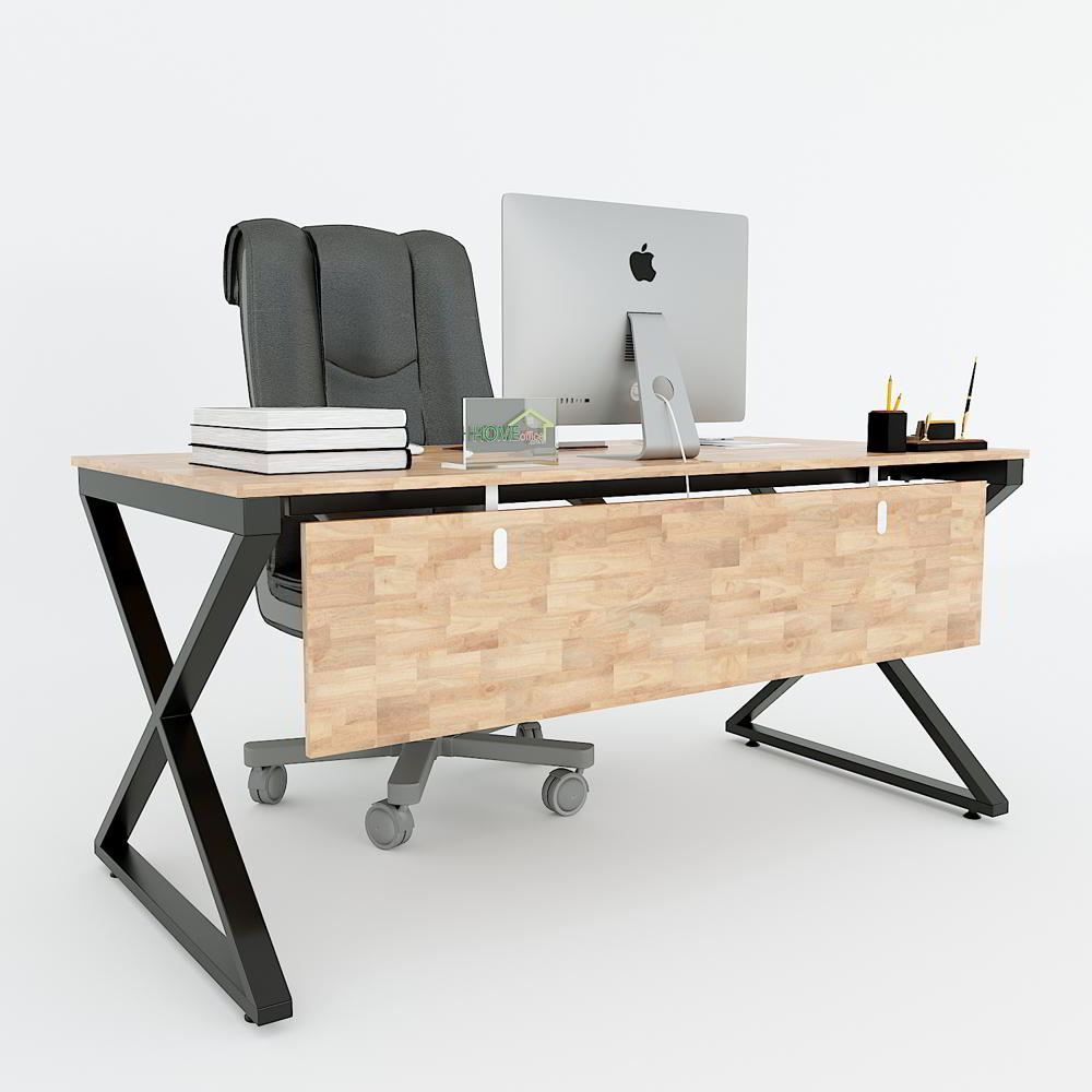 Bàn làm việc HBXC024 XConcept chân sắt chữ nhật 25x50. Bàn văn phòng gỗ cao su ghép tiêu chuẩn AA dày 17mm PU màu gỗ tự nhiên luôn có một vẻ đẹp riêng, thân thiện với môi trường, đối với các văn phòng mở, văn phòng kết hợp với cây xanh thì việc sử dụng bàn gỗ cao su chân sắt kết hợp trở nên hoàn hảo. Chất liệu gỗ cao su tại HomeOffice là gỗ ghép dày 17mm tiêu chuẩn AA ( 2 mặt đẹp) được xử lý qua 4 công đoạn trước khi PU hoàn thiện cho bề mặt sản phẩm rất đẹp mắt, chống nước tuyệt đối. Khung chân sắt sơn tĩnh điện với cơ cấu ngàm lắp ráp dễ dàng.