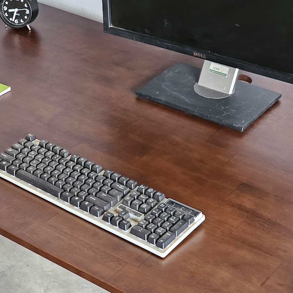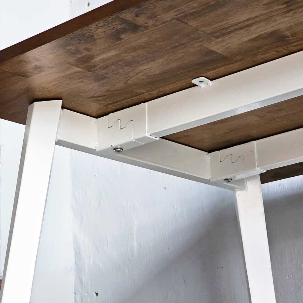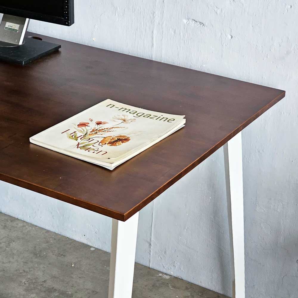 Với mặt bàn được làm bằng gỗ cao su AA dày 17mm, tiêu chuẩn xuất khẩu, có màu gỗ tự nhiên đẹp không có mấu mắt. Bề mặt gỗ được xử lý qua 4 công đoạn trước khi PU hoàn thiện cho bề mặt sản phẩm rất đẹp mắt, chống nước tuyệt đối. Hệ khung chân sắt loại dày 1.2 ly , giúp cho bàn luôn đảm bảo độ cứng cáp, ổn định và khả năng chịu lực tốt. Bề mặt khung chân sắt được phủ một lớp sơn tĩnh điện bảo vệ giúp chống ăn mòn, tăng tuổi thọ sản phẩm và đồng thời đảm bảo tính thẩm mỹ cao.