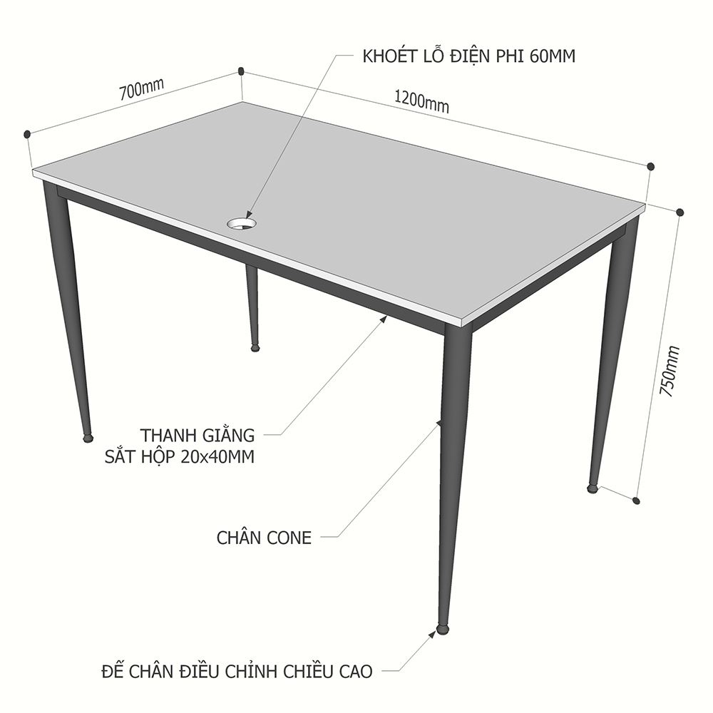 Bàn làm việc 120x70cm gỗ Plywood phủ melamin chân hệ Cone II