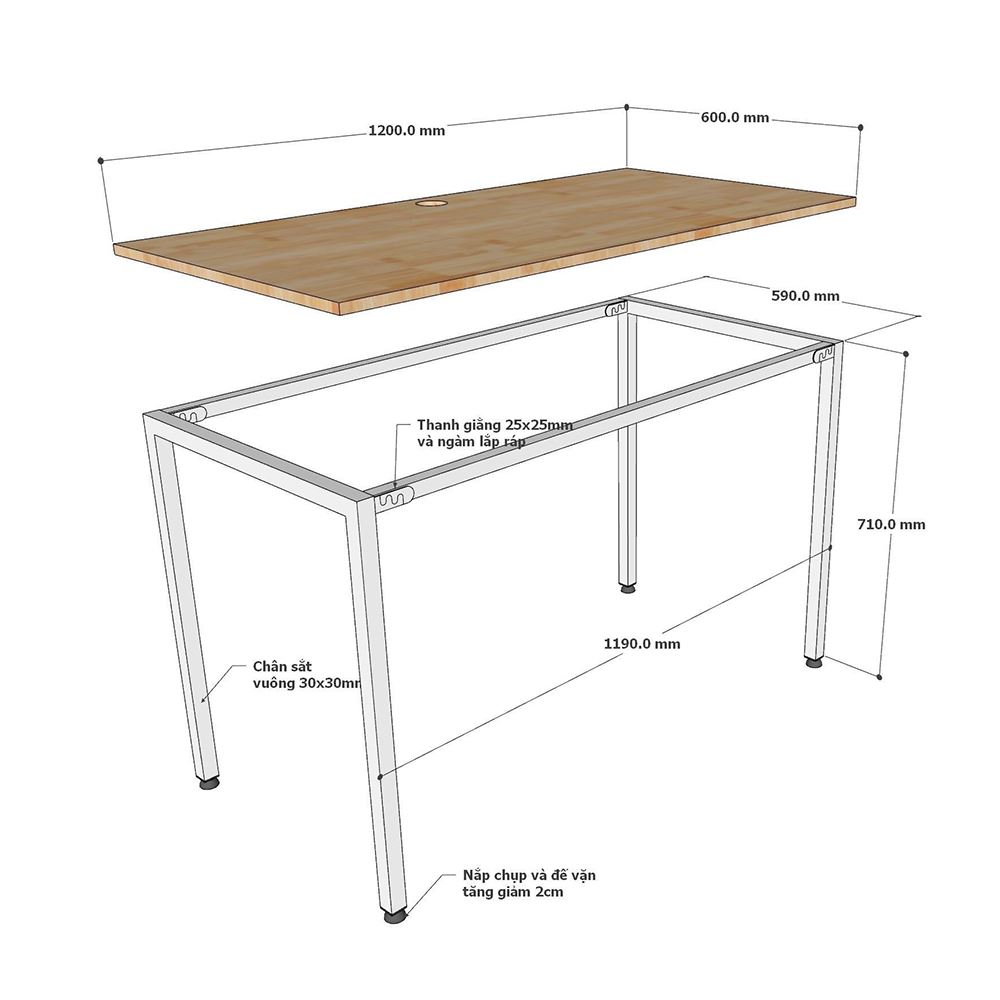 Bàn làm việc 120x60cm gỗ tự nhiên hệ Minimal 2 HBMN030 với chân bàn được làm từ sắt vuông 30x30mm mang đến vẻ đẹp tinh tế nhưng không kém phần chắc chắn, chân bàn liên kết với nhau theo cơ cấu lắp ráp ngàm 25x25mm giúp bạn dễ dàng tháo lắp, thuận tiện di dời vận chuyển. Mặt bàn gỗ cao su tiêu chuẩn AA dày 17mm được xử lý và hoàn thiện chống thấm nước, màu sắc đẹp mắt.