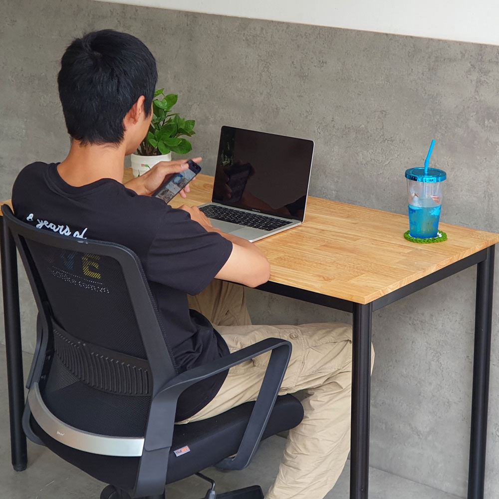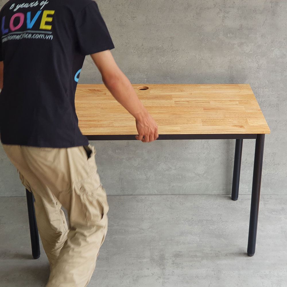 Bàn làm việc 120x60cm gỗ tự nhiên HBOM002 thuộc hệ bàn OMA có đặc điểm khung chân sắt lắp ráp với chân trụ được làm từ sắt tròn toát lên vẻ đẹp mềm mại, tinh tế nhưng không kém phần chắc chắn và tiện lơi khi có thể tháo lắp, giúp việc di dời dễ dàng hơn. Kết hợp với khung chân sắt là mặt bàn gỗ cao su tiêu chuẩn AA sơn PU màu sắc đẹp mắt, bề mặt được sử lý chống thấm nước, chống cong vênh đảm bảo độ bền cao.