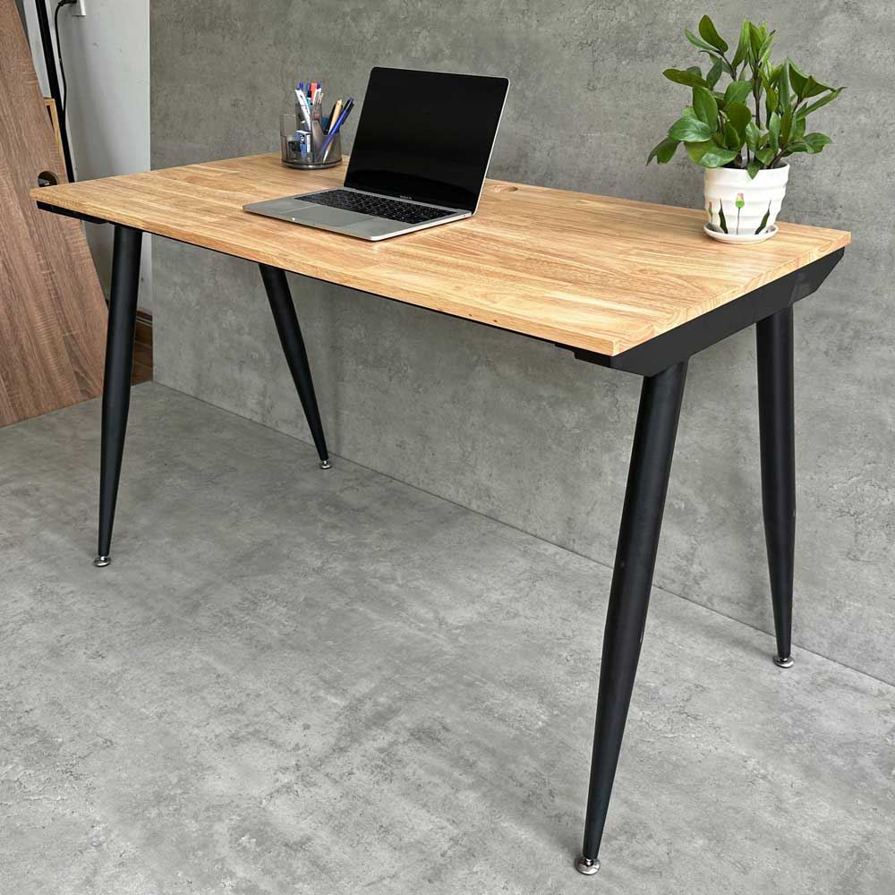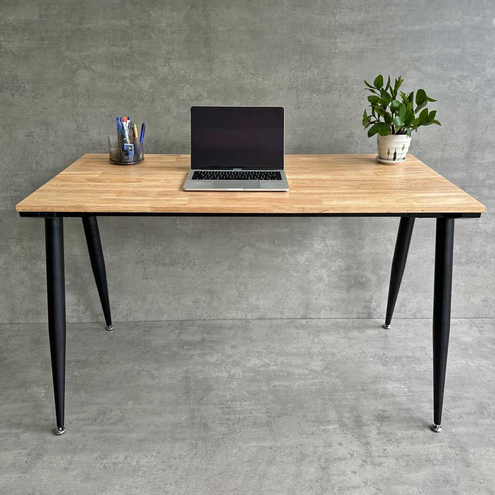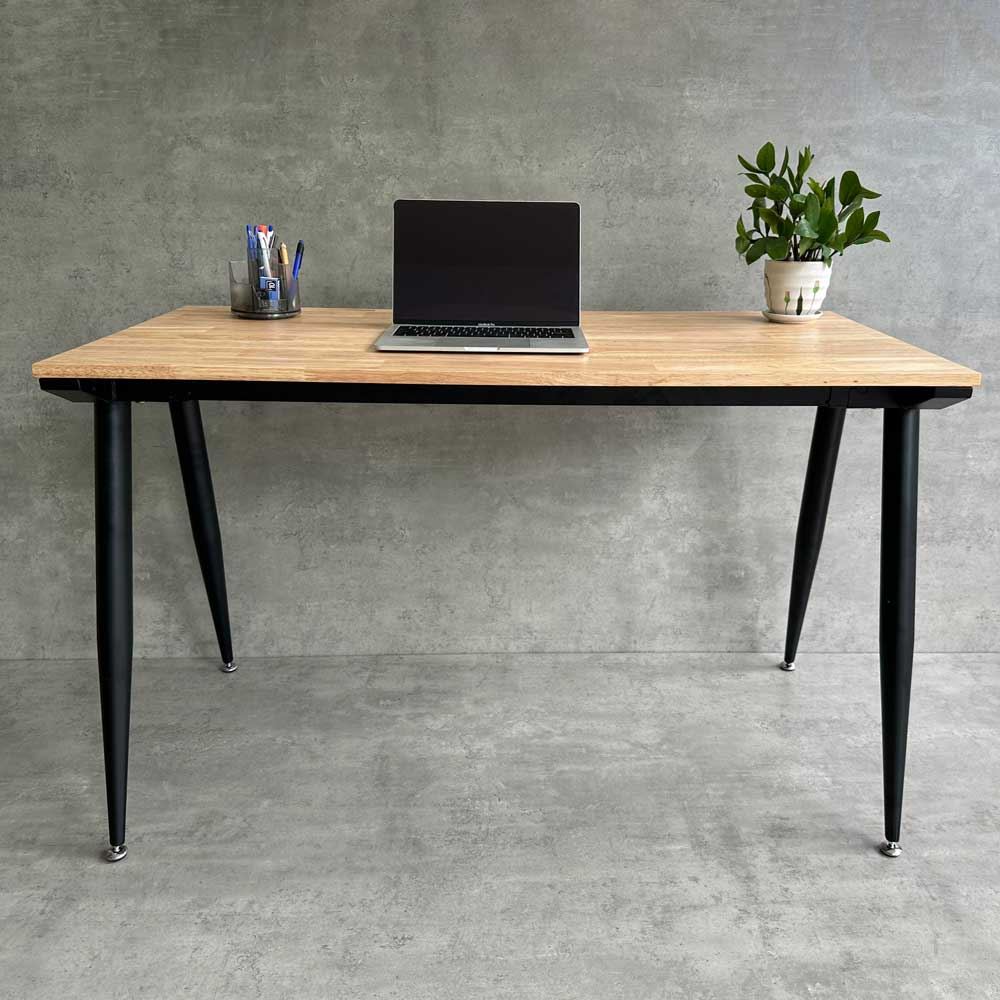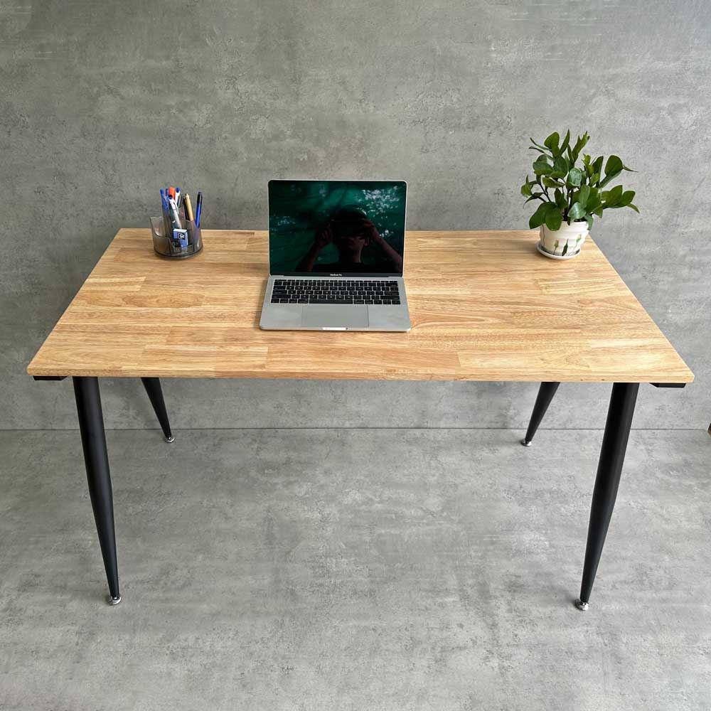 Bàn Làm Việc CONE HBCO002 với chân bàn được làm từ sắt ống côn lắp ráp ngàm chắc chắn sơn tĩnh điện kết hợp với mặt bàn từ chất liệu gỗ cao su tiêu chuẩn AA dày 17mm được PU hoàn thiện với 5 màu sắc lựa chọn rất đẹp.