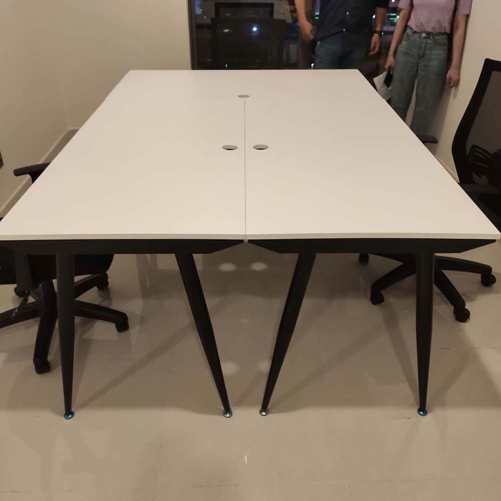Bàn Làm Việc CONE HBCO004 với chân bàn được làm từ sắt ống côn lắp ráp ngàm chắc chắn sơn tĩnh điện kết hợp với mặt bàn từ chất liệu gỗ cao su tiêu chuẩn AA dày 17mm được PU hoàn thiện với 5 màu sắc lựa chọn rất đẹp.
