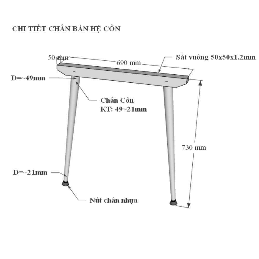Chân bàn có giăng bàn sắt 25x50mm lắp ráp đỡ mặt bàn chắc chắn