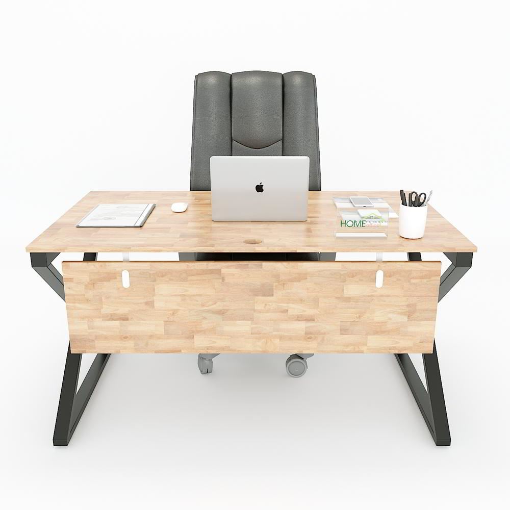 Bàn làm việc HBXC006 XConcept chân sắt chữ nhật 25x50. Bàn văn phòng gỗ cao su ghép tiêu chuẩn AA dày 17mm PU màu gỗ tự nhiên luôn có một vẻ đẹp riêng, thân thiện với môi trường, đối với các văn phòng mở, văn phòng kết hợp với cây xanh thì việc sử dụng bàn gỗ cao su chân sắt kết hợp trở nên hoàn hảo. Chất liệu gỗ cao su tại HomeOffice là gỗ ghép dày 17mm tiêu chuẩn AA ( 2 mặt đẹp) được xử lý qua 4 công đoạn trước khi PU hoàn thiện cho bề mặt sản phẩm rất đẹp mắt, chống nước tuyệt đối. Khung chân sắt sơn tĩnh điện với cơ cấu ngàm lắp ráp dễ dàng.