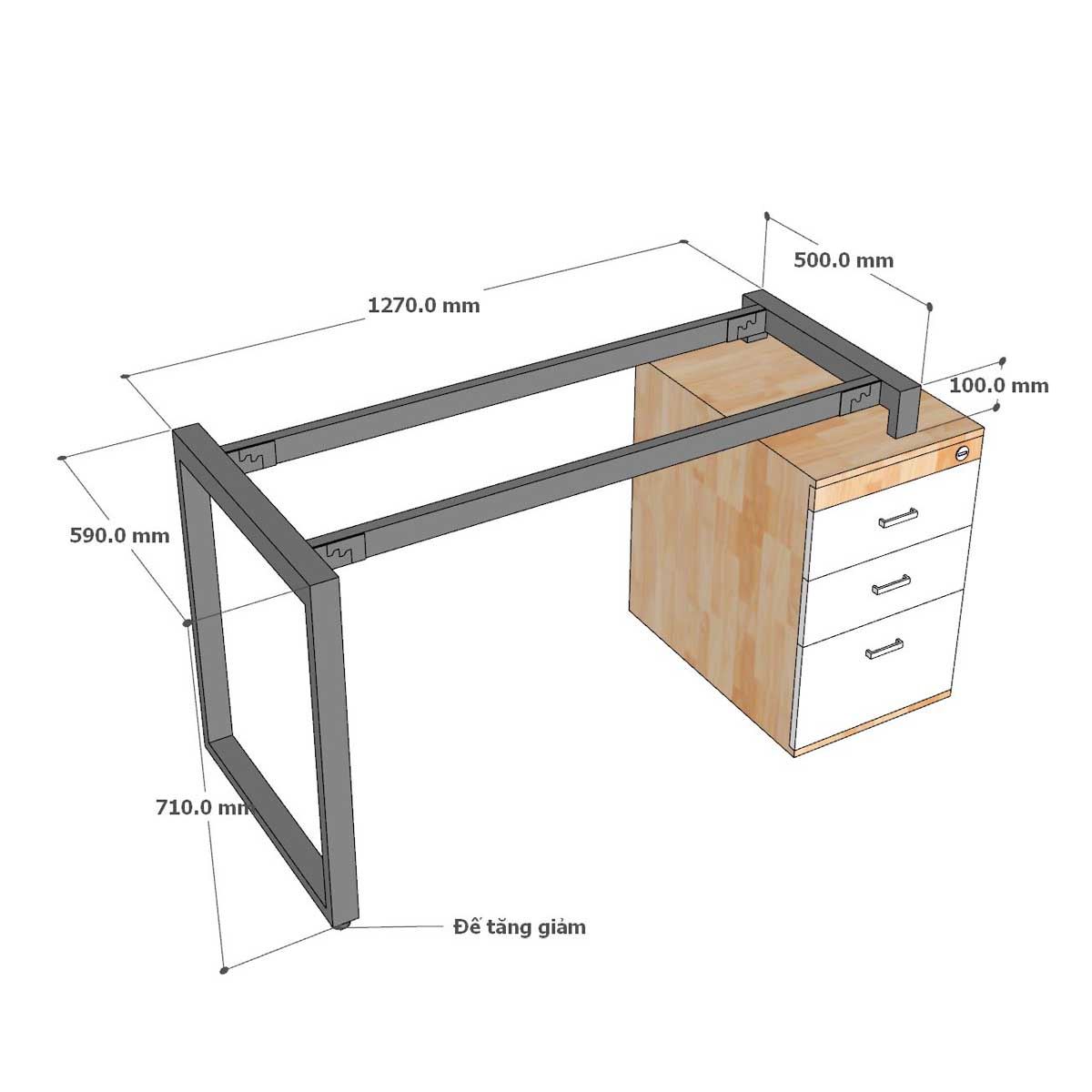 Phần khung chân bàn được làm từ sắt hộp 25x50, tạo nên sự chắc chắn và ổn định trong quá trình sử dụng. Kết cấu khung sắt hộp cũng giúp tăng khả năng chịu lực cao bàn làm việc giúp bạn yên tâm sử dụng trong thời gian dài. Bàn làm việc sử dụng cơ cấu lắp ráp ngàm liên kết âm dương giúp bạn tiết kiệm thời gian và công sức khi lắp đặt. Bạn có thể tự mình lắp ráp mà không cần sự hỗ trợ của thợ chuyên nghiệp.