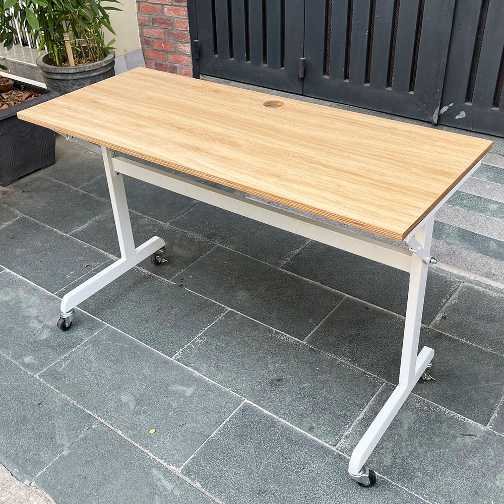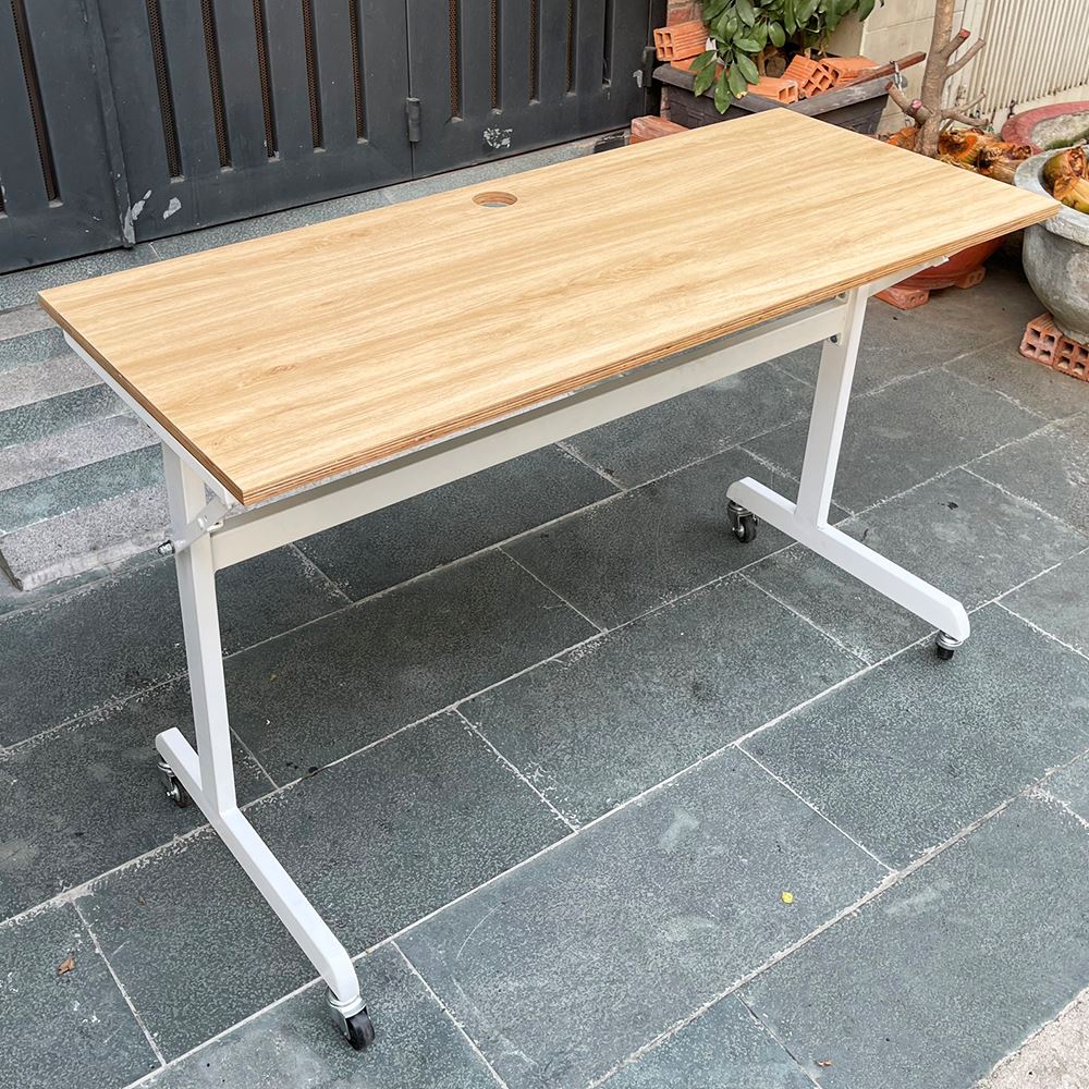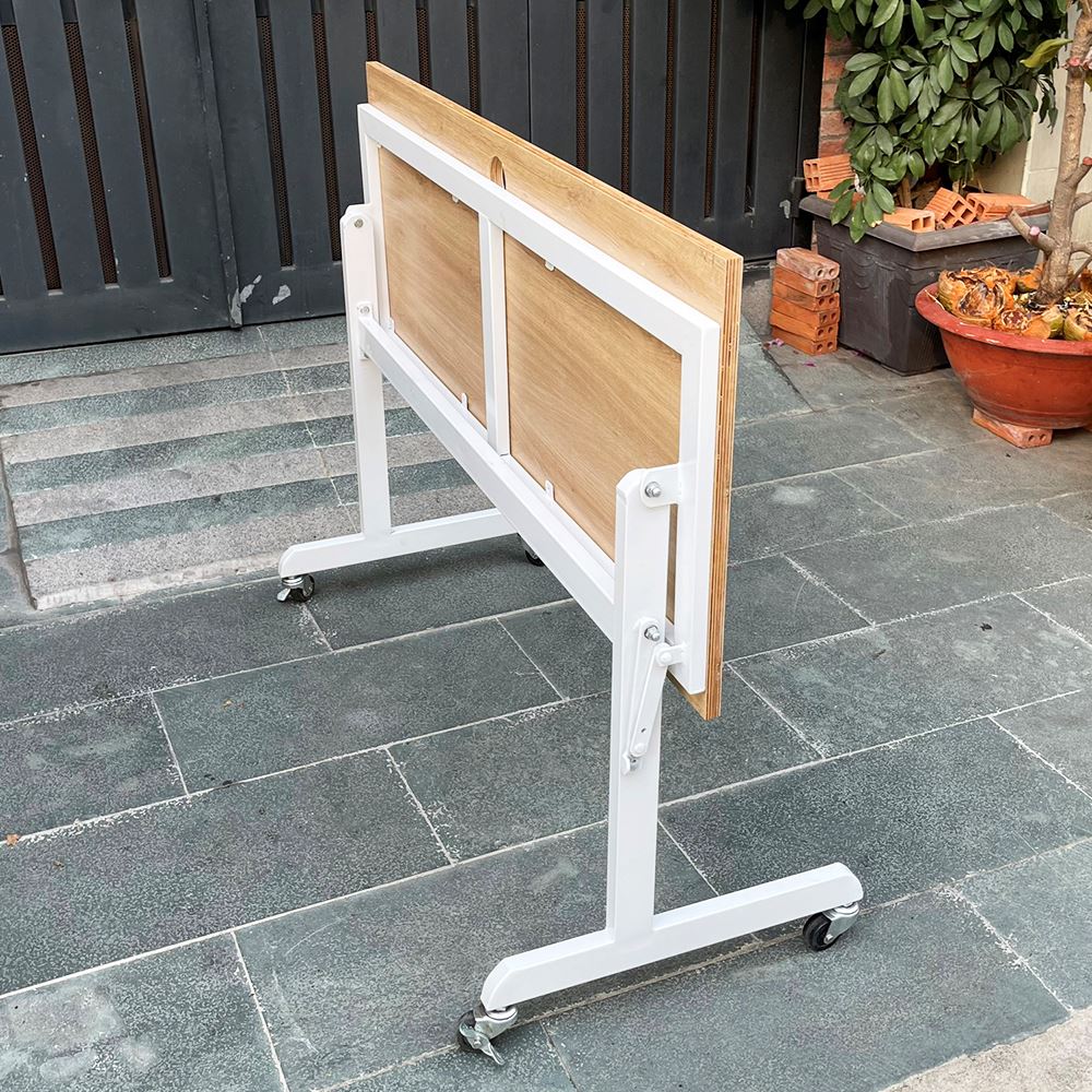 Bàn làm việc chân gấp có bánh xe gỗ Plywood phủ melamin