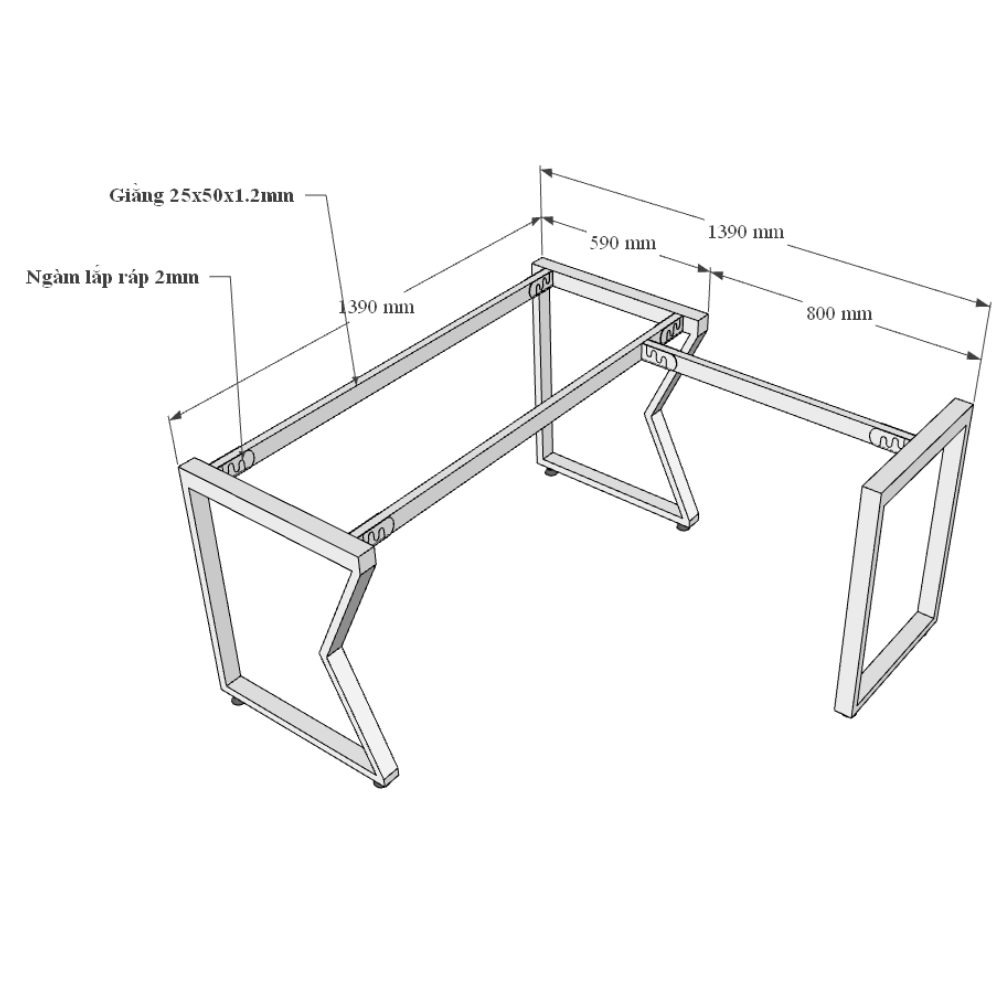 Bàn chữ L 140x140 MConcept chân sắt lắp ráp