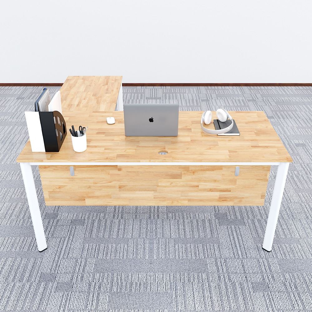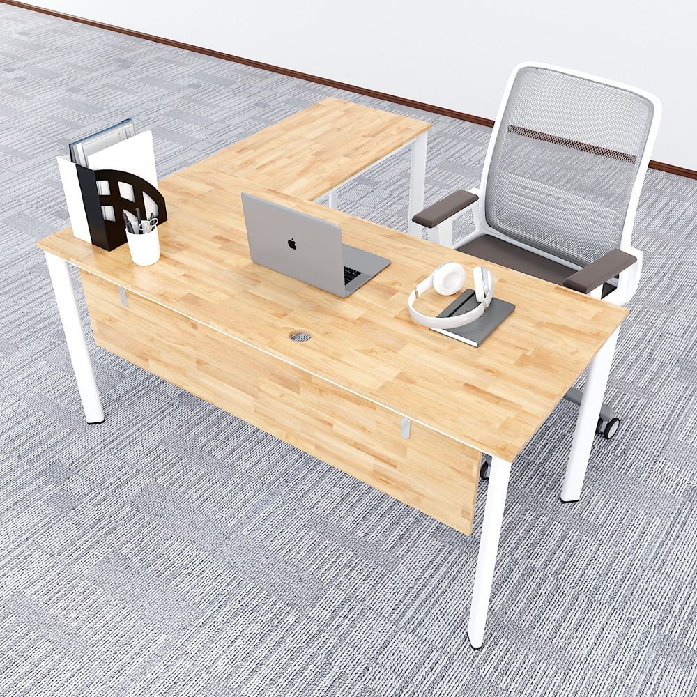 Bàn chữ L gỗ cao su chân sắt Oval cơ cấu lắp ráp tiện lợi