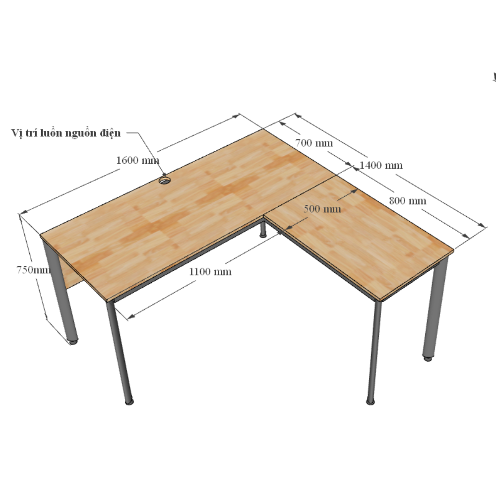 Kích thước chi tiết bàn làm việc góc L 160x140cm