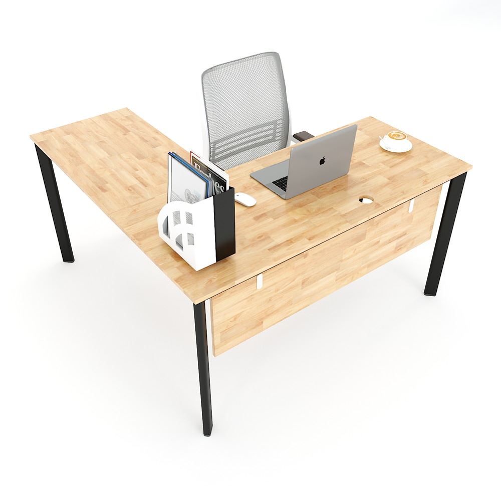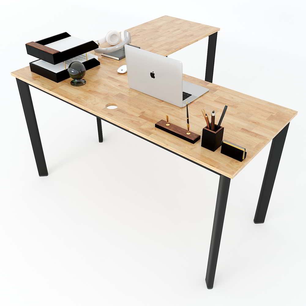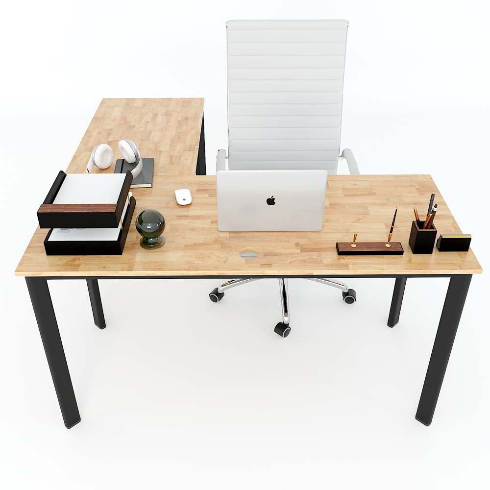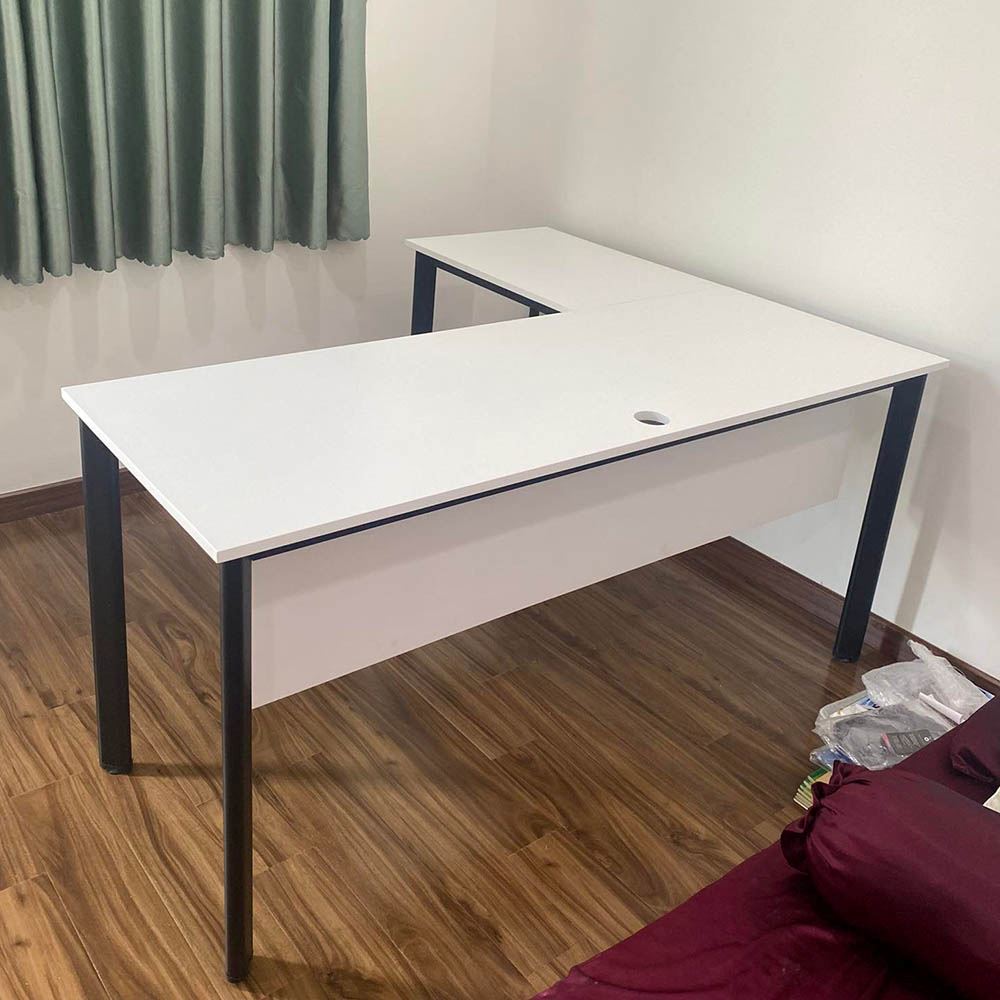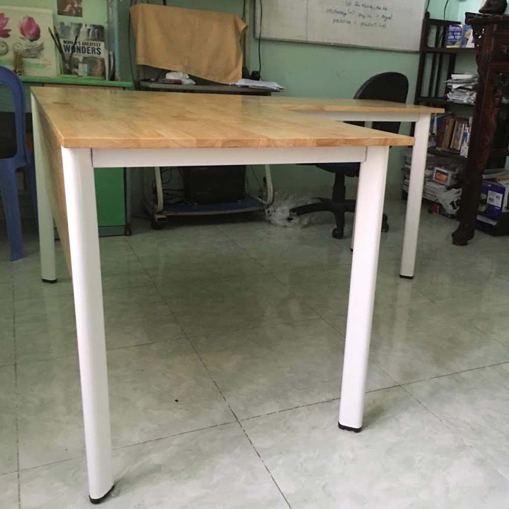 Bàn làm việc chữ L gỗ cao su chân sắt Oval cơ cấu lắp ráp