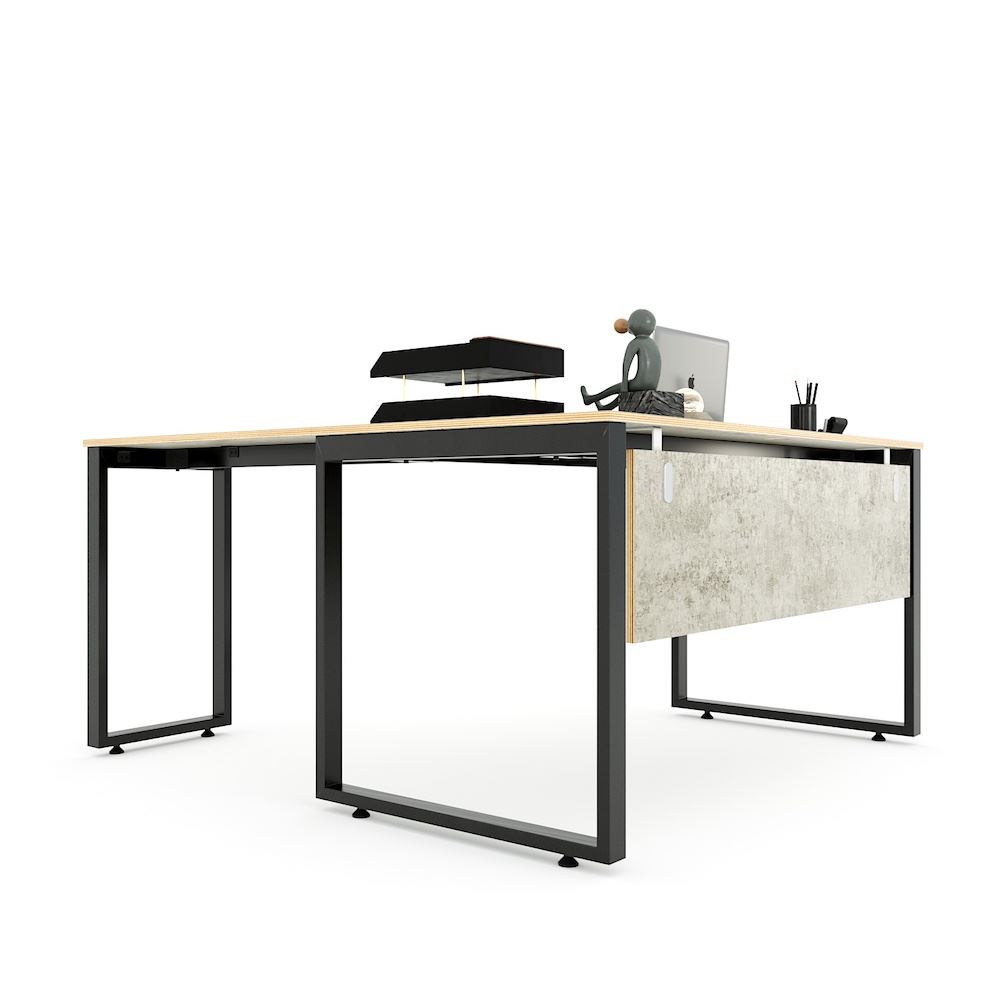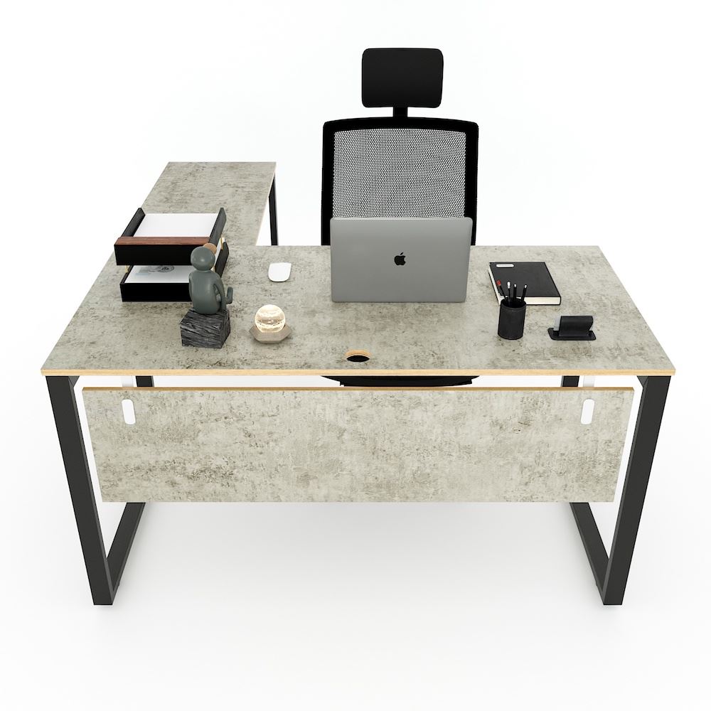 Bàn làm việc chữ L chân sắt hệ RECTANG HBRT052 với mặt bàn gỗ Plywood cốt gỗ tự nhiên bề mặt phủ melamin được xử lý chống thấm nước và cong vênh, mặt bàn màu bê tông độc đáo chắc chắn là điểm nhấn thú vị cho không gian làm viêc của bạn. Kết hợp với mặt bàn Plywood là hệ khung chân sắt theo cơ cấu lắp ráp ngàm thông minh, tiện lợi nhưng vẫn đảm bảo độ chắc chắn, bên cạnh đó bề mặt chân sắt được phủ lớp sơn tĩnh điện cao cấp làm hạn chế ăn mòn hoá học giúp sản phẩm có độ bền cao hơn. Với những người làm việc với 2 màn hình, hay thường xuyên sử dụng máy in thì bàn làm việc góc L chính là sự lựa chọn tuyệt vời không thể bỏ qua.