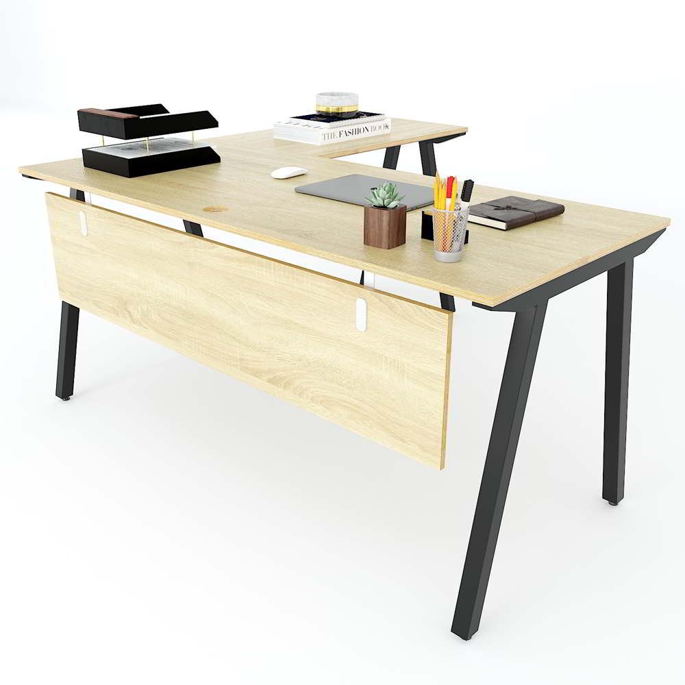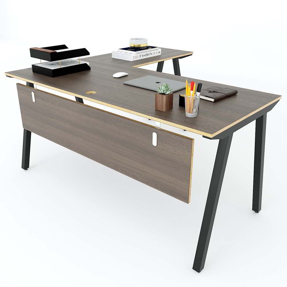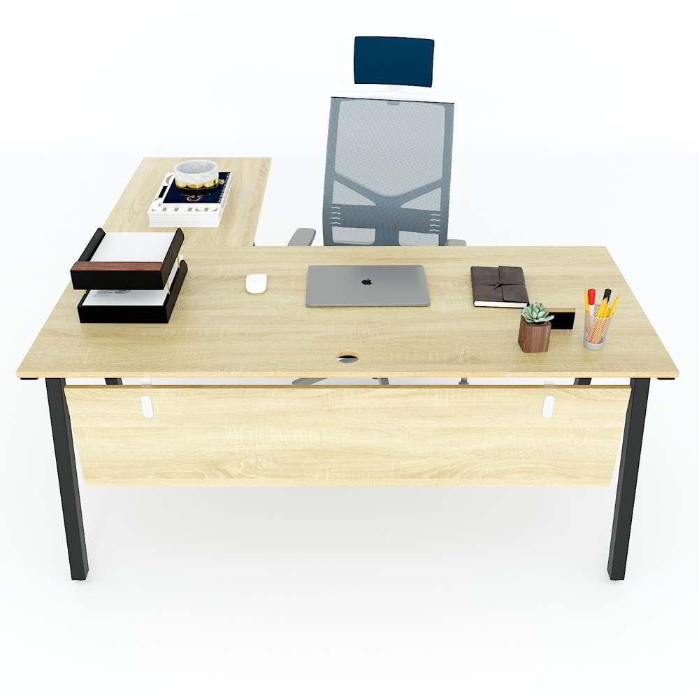Bàn giám đốc chữ L gỗ Plywood hệ PLY chân sắt lắp ráp HBPL017 là sản phẩm thuộc dòng bàn lãnh đạo, mặt bàn phụ tăng không gian làm việc mà vẫn tiết kiệm diện tích. Mặt bàn gỗ Plywood có lõi bản chất là gỗ tự nhiên với bề mặt phủ Melami cực đẹp mắt, gỗ Plywood được sản xuất dưới công nghệ hiện đại nên có tính bền rất cao, độ sáng, độ cứng, khả năng chịu lực tốt. Kết hợp hệ khung chân lắp ráp vô cùng chắc chắn và dễ dàng sơn tĩnh điện hoàn thiện đẹp mắt, chân có đế nhựa tăng giảm chống kênh và chống trầy sàn, đây chắc chắn sẽ là sự lựa chọn mới cho văn phòng hay phòng làm việc cá nhân của bạn.