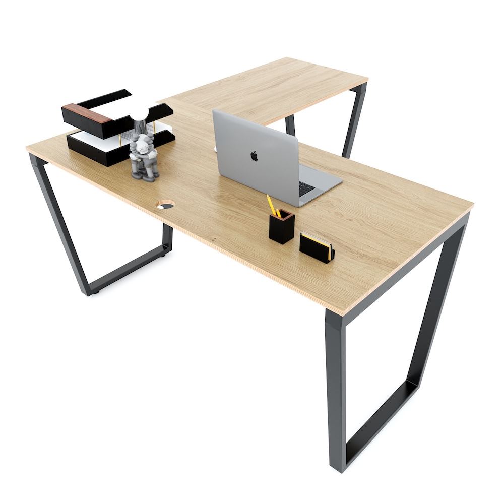Bàn làm việc chữ L 140x150cm gỗ Plywood melamin chân sắt Trapeze