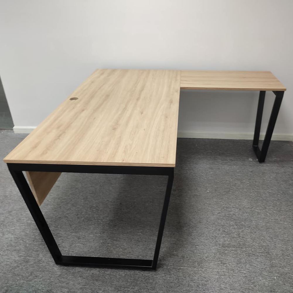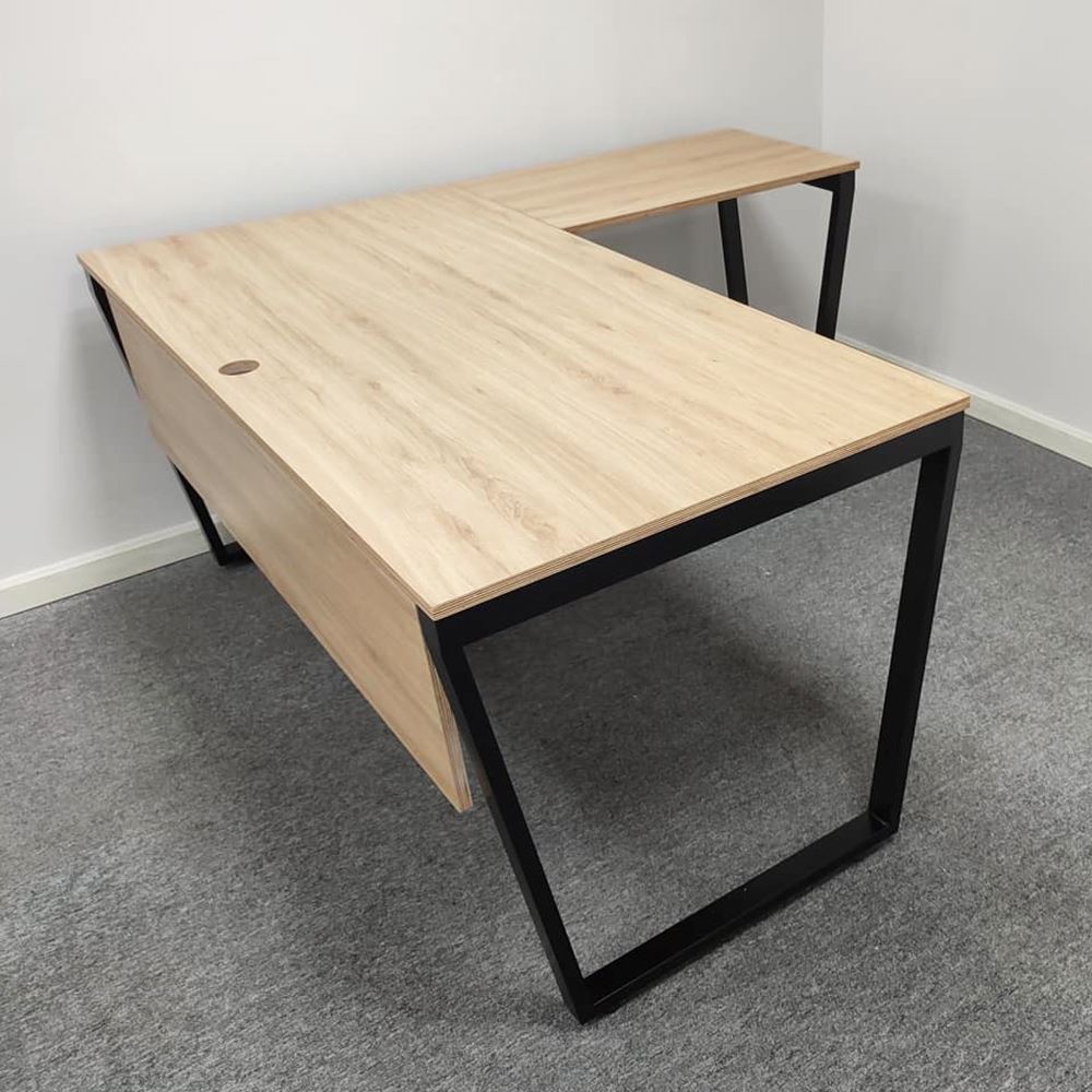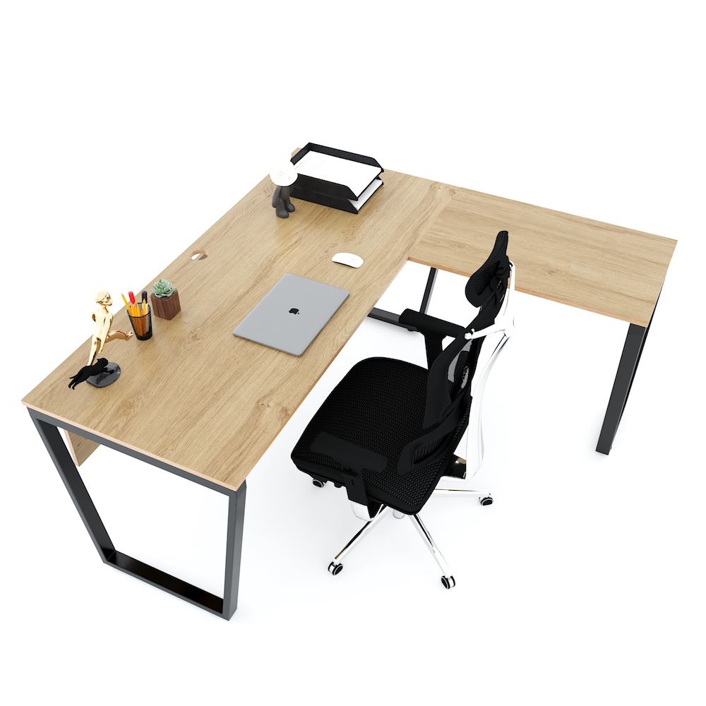 Bàn làm việc chữ L 160x150cm gỗ Plywood phủ melamin chân sắt hệ Trapeze