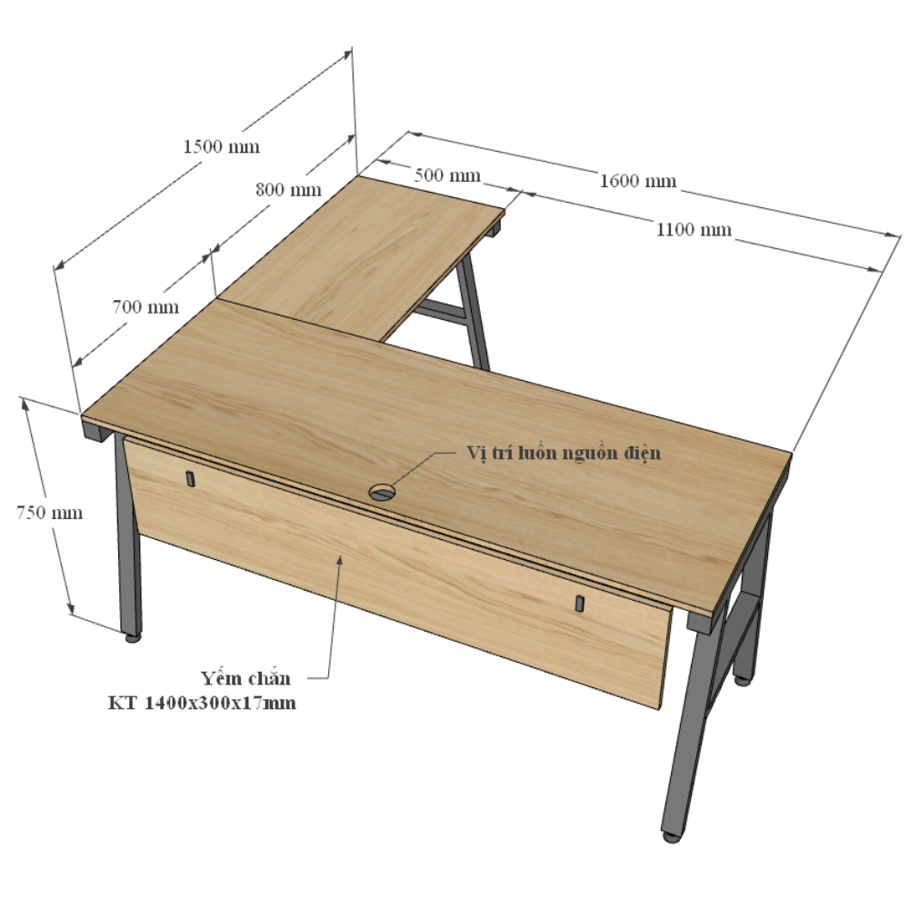 Kích thước chi tiết bàn làm việc góc L 160x150cm