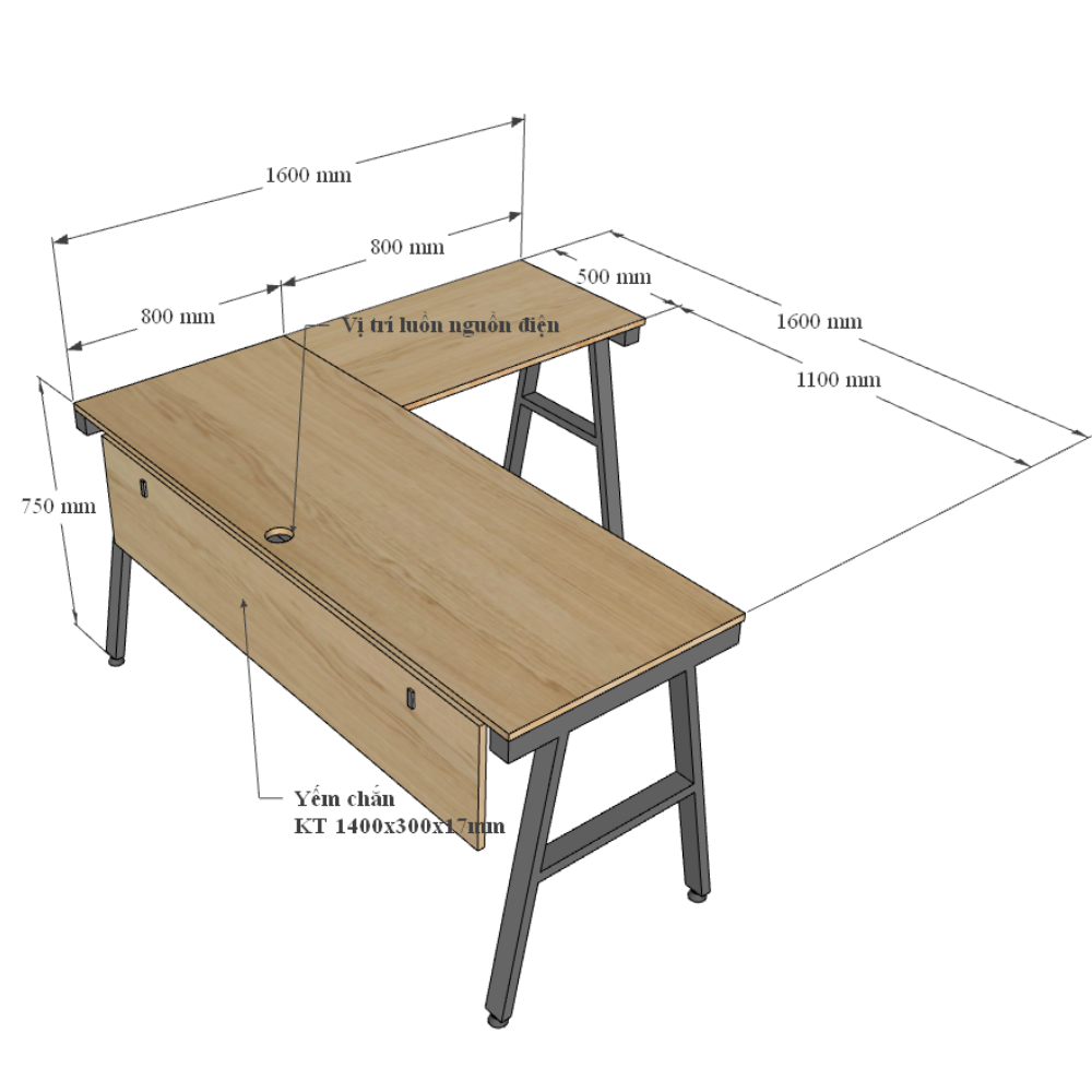 Kích thước chi tiết bàn làm việc góc L 160x140cm