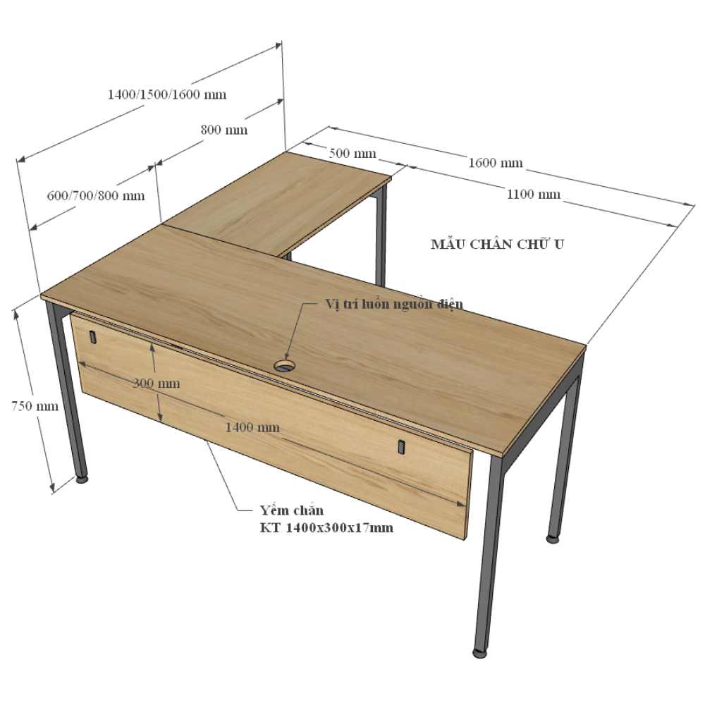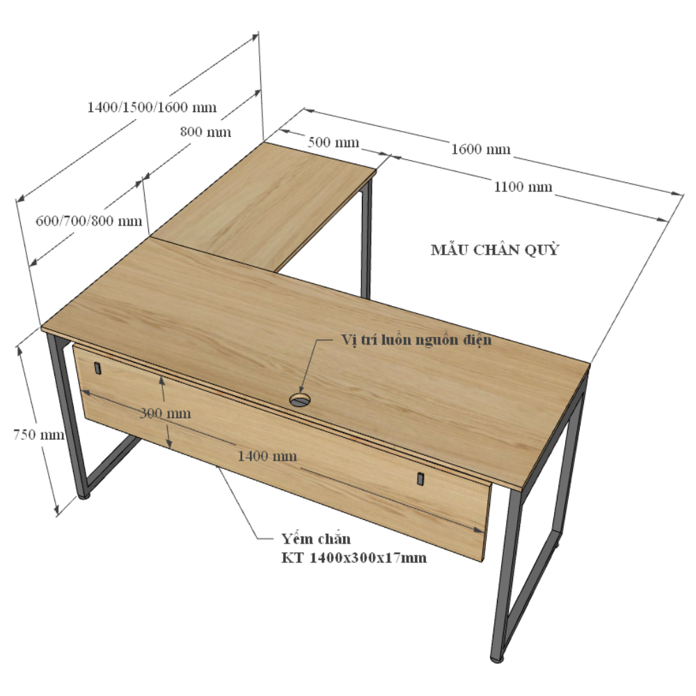 Kích thước chi tiết bàn làm việc góc L 160x140cm