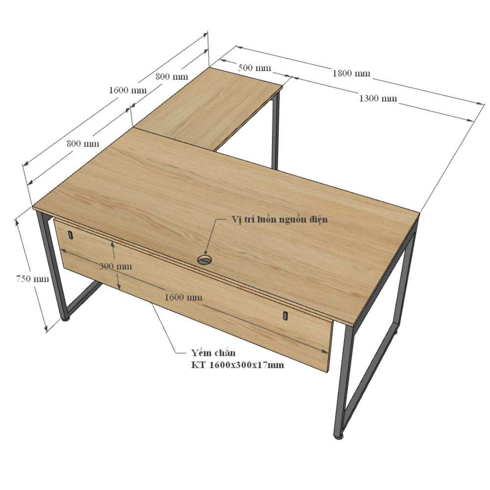 Kích thước chi tiết bàn làm việc góc L 180x160cm