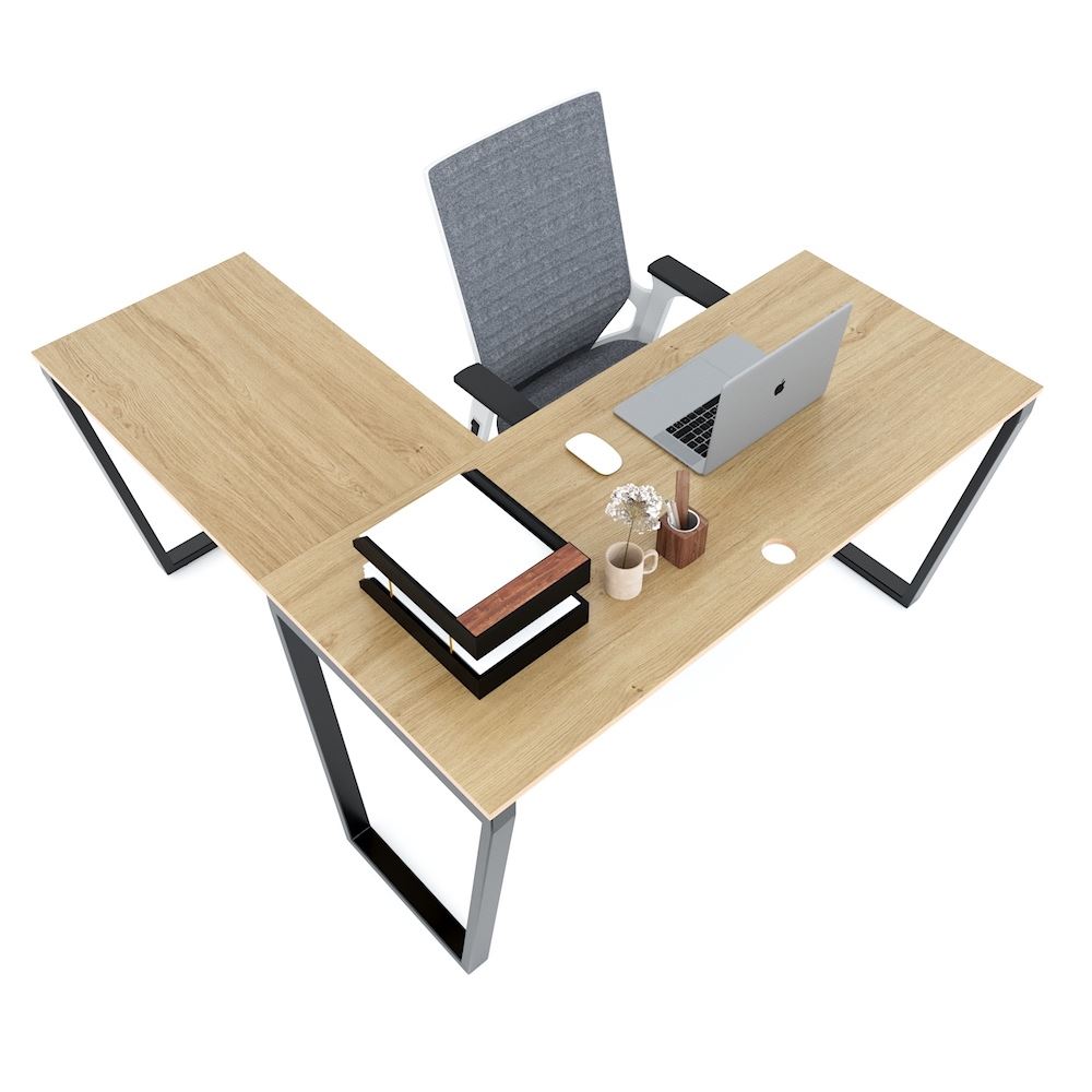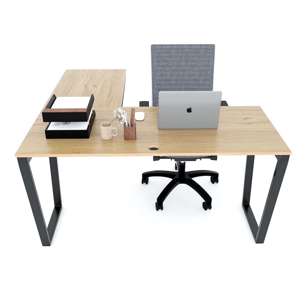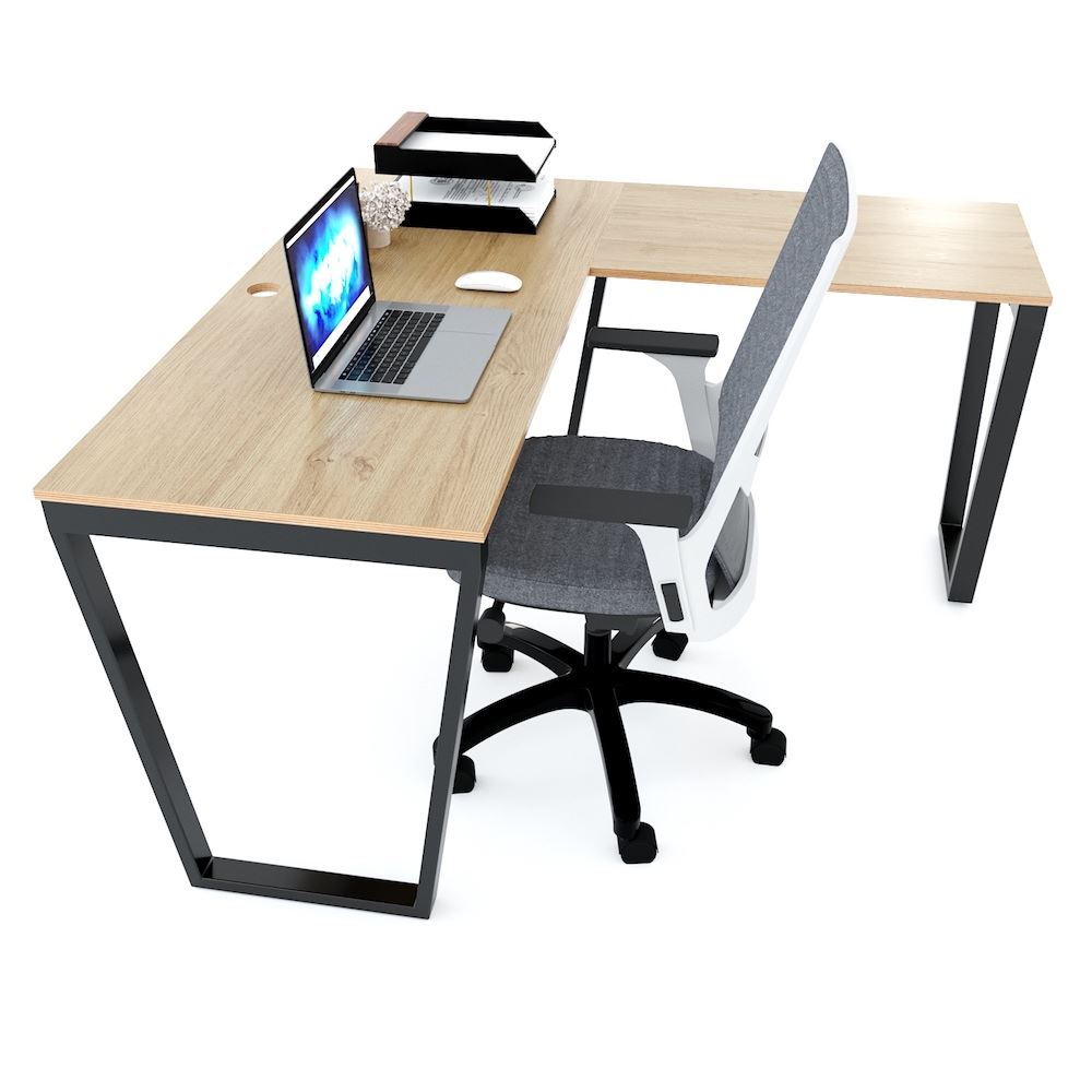 Bàn làm việc chữ L 140x140cm gỗ Plywood chân sắt Trapeze