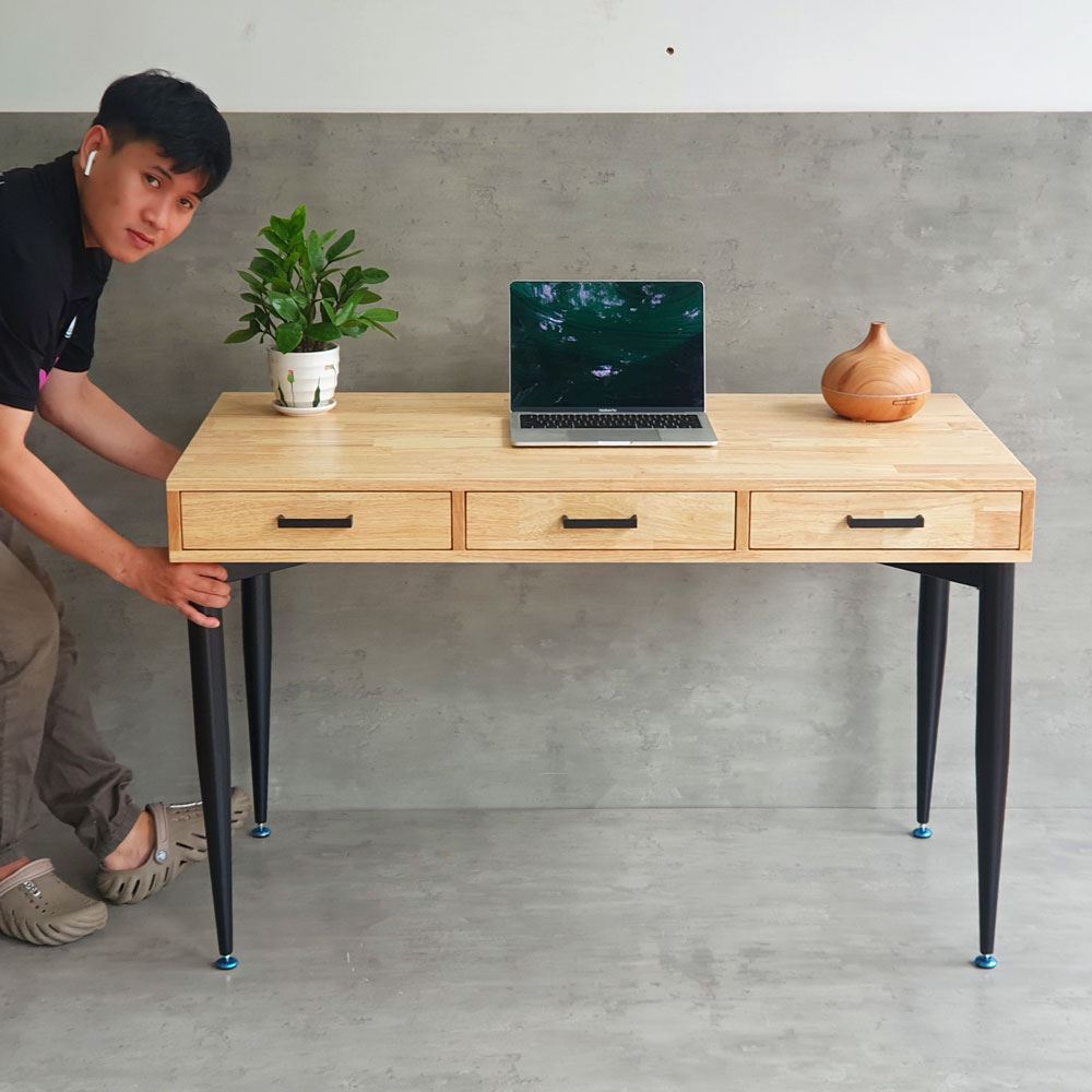 Bàn có hộc tủ BD68098 với chất liệu chính được sử dụng là gỗ cao su tiêu chuẩn AA dày 17mm sơn PU hoàn thiện chống thấm nước, chống cong vênh bền bỉ theo thời gian. Bên canh đó gỗ sơn PU nhiều màu sắc đẹp mắt phù hợp với mọi không gian có concept khác nhau. Hệ khung chân được hàn chắc chắn, giúp bàn luôn ổn định và bền chắc. Bề mặt khung chân được sơn tĩnh điện chống gỉ sét, đảm bảo độ thẩm mỹ và sự bền bỉ trong quá trình sử dụng.