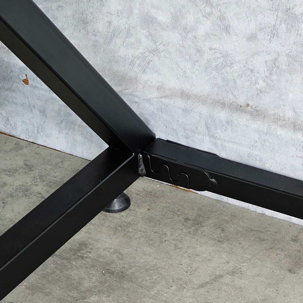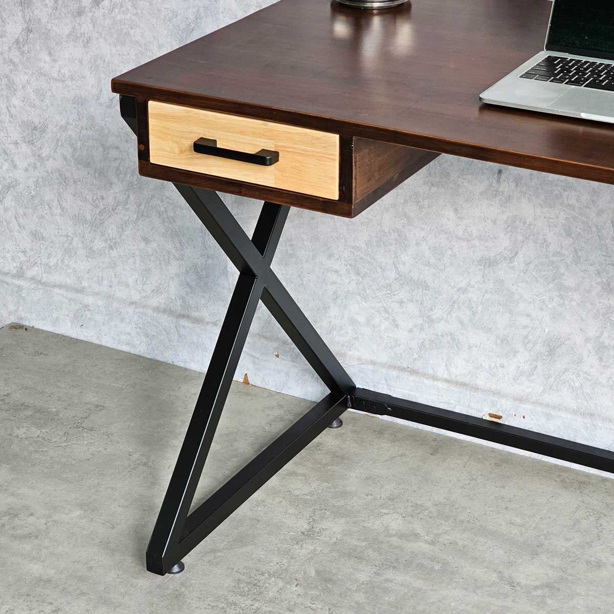 Khung chân bàn sắt hình chữ X lắp ráp ngàm tạo nên sự chắc chắn, ổn định đồng thời mang đến điểm nhấn độc đáo