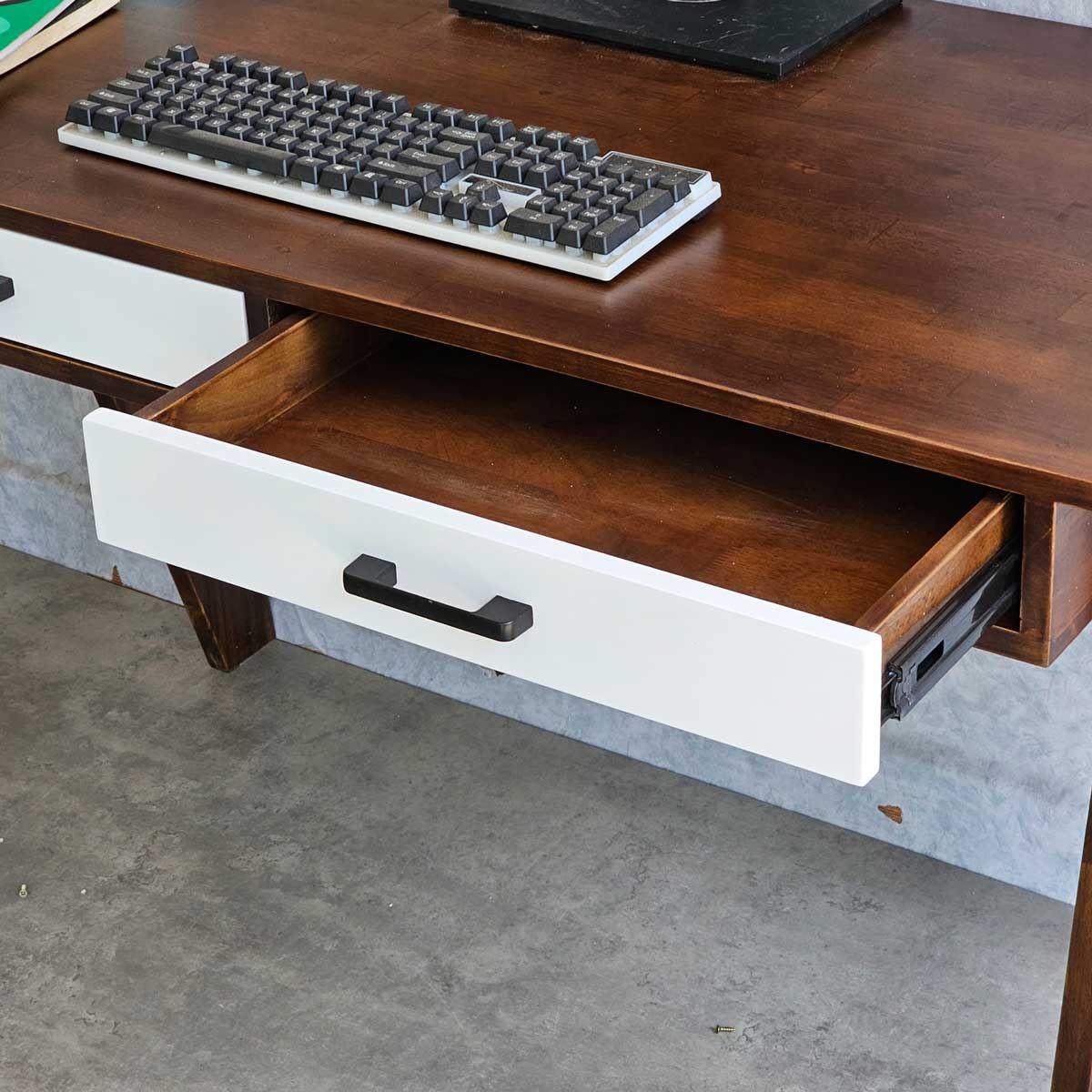 Bàn được trang bị 2 ngăn kéo gỗ rộng rãi, giúp bạn lưu trữ tài liệu, dụng cụ học tập và làm việc một cách gọn gàng, ngăn nắp