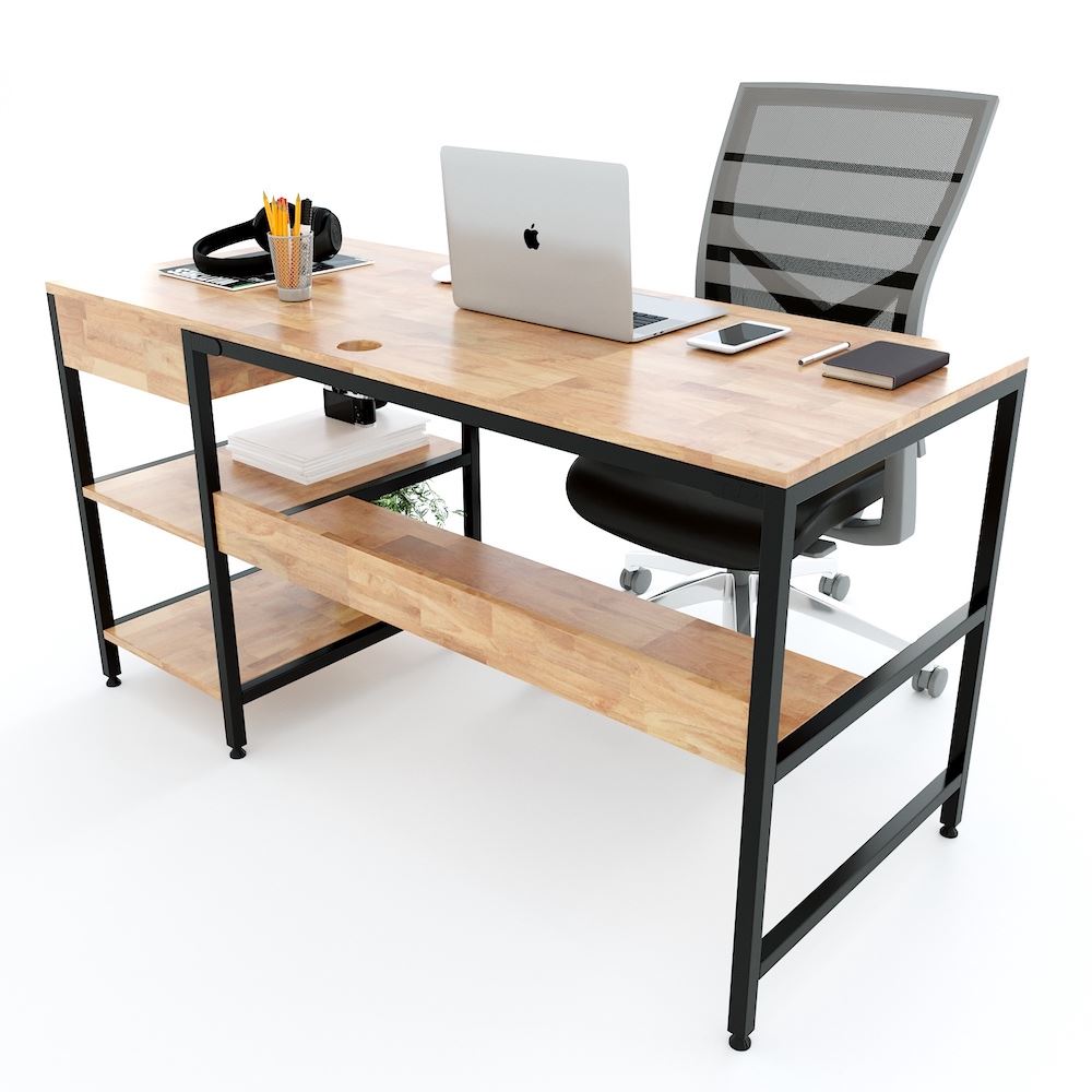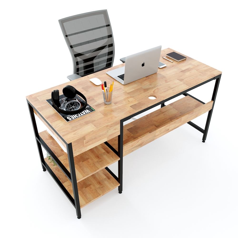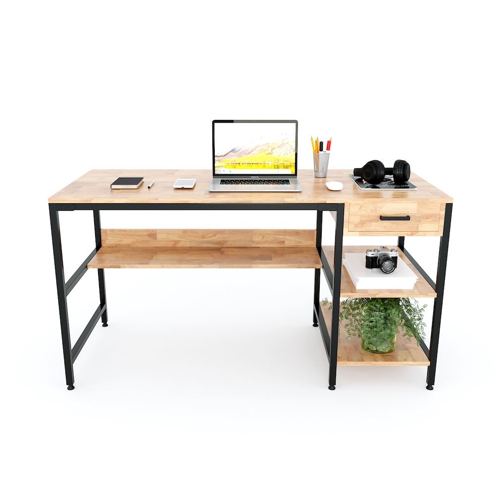 Bàn làm việc 140x60cm có ngăn kéo chân kết hợp kệ BD68079 sử dụng gỗ cao su ghép tiêu chuẩn AA dày 17mm của HomeOffice đã được khẳng định qua nhiều năm, màu sắc tự nhiên đẹp mắt, khung chân sắt sơn tĩnh điện rất chắc chắn, mẫu bàn BD68079 không chỉ dùng làm bàn học mà còn có thể dùng làm làm việc đều được. Mặt bàn kích thước 140x60cm rộng rãi thoải mái bài trí vật dụng làm việc, thiết kế thông minh kết hợp chân bàn thành kệ sách 2 tầng và có ngăn kéo tăng không gian lưu trữ hay trưng bày các món đồ yêu thích hoặc chậu cây trang trí góp phần giúp không gian làm việc và học tập thêm mới mẻ, thú vị.