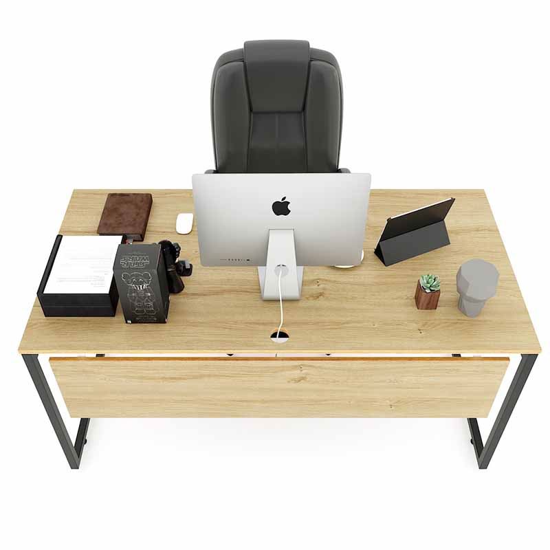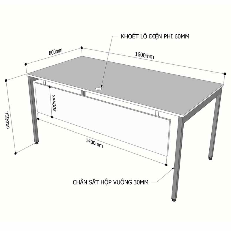 Bàn làm việc 160x80cm gỗ Plywood phủ melamin vân sồi chân hệ Slean có quỳ