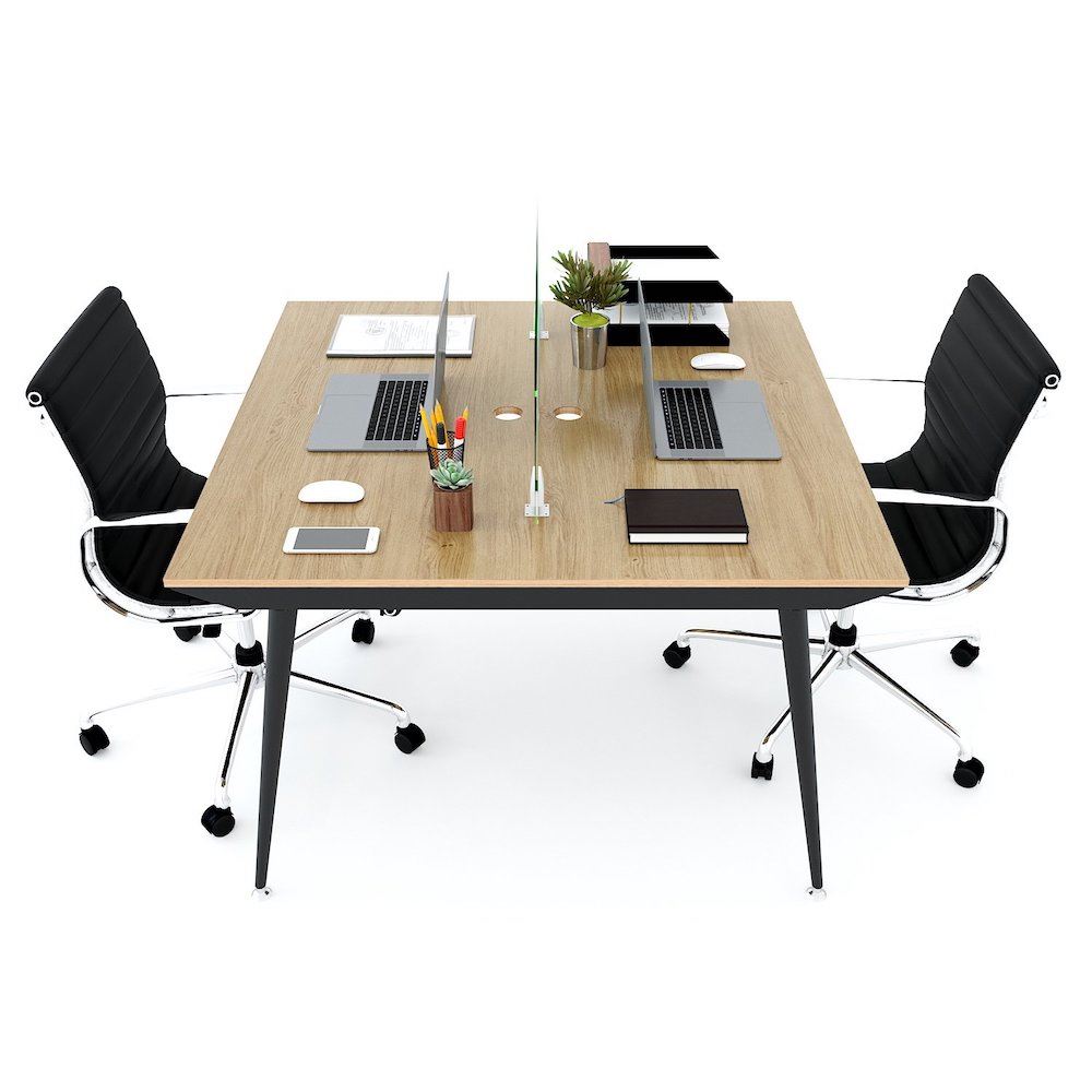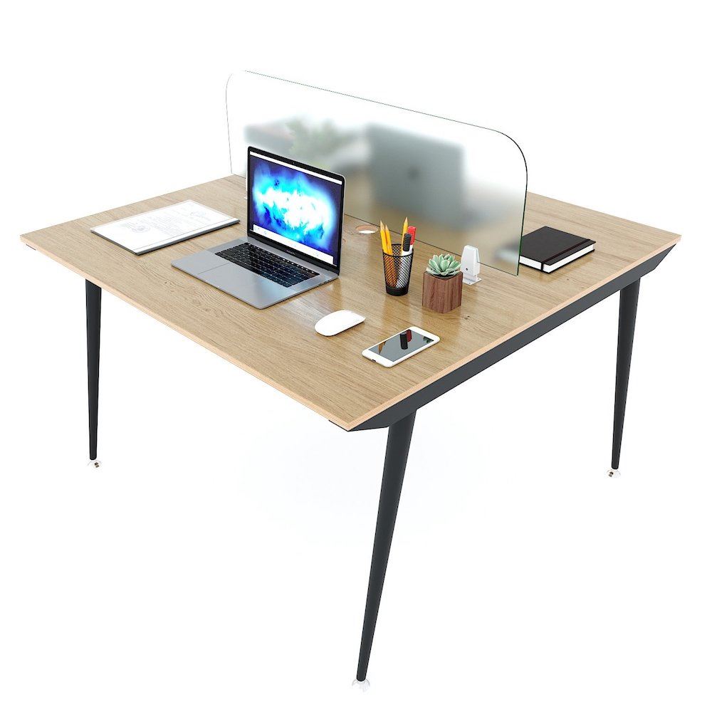 Bàn cụm 2 chỗ ngồi 120x120cm chân sắt hệ CONE HBCO026 với mặt bàn gỗ Plywood cốt gỗ tự nhiên bề mặt phủ melamin vân sồi đẹp mắt, bề mặt bàn được xử lý chống thấm nước và cong vênh, màu gỗ tự nhiên đẹp mắt mang đến sự thân thiện, gần gũi cho không gian làm việc của bạn. Kết hợp với mặt bàn là khung chân sắt vuốt côn đẹp mắt, hệ khung chân cơ cấu lắp ráp ngàm dễ dàng tháo lắp. Mặt bàn kích thước 120x120cm, mỗi người sử dụng đủ 60x120cm theo tiêu chuẩn kích thước bàn làm việc hiện nay.