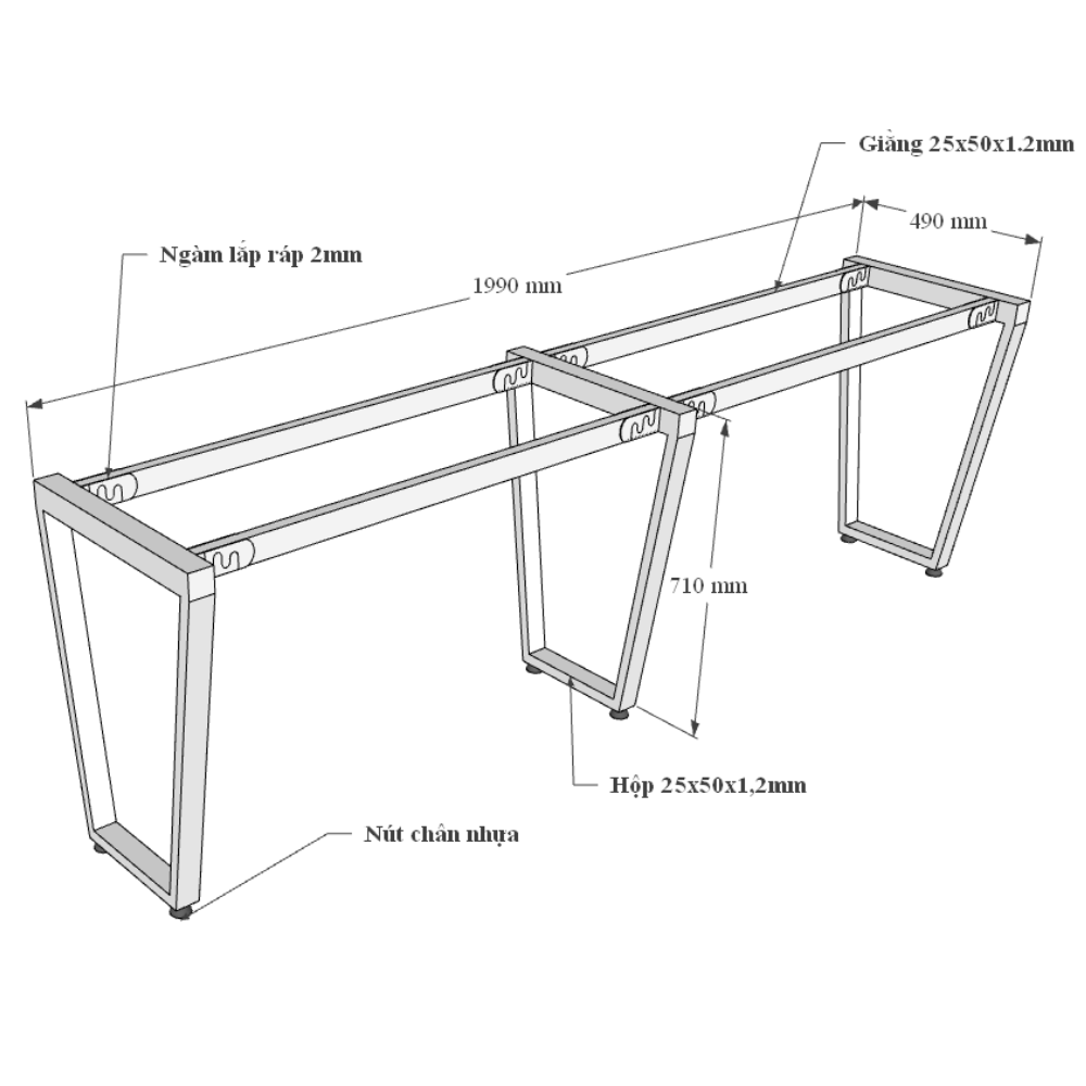 Bàn cụm 2 200x50cm gỗ Plywood phủ melamin chân Trapeze