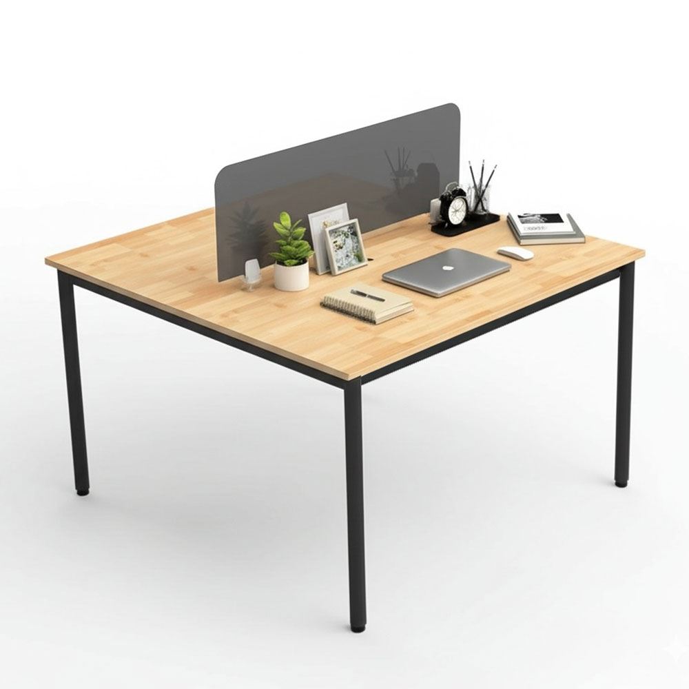 Bàn làm việc cụm 2 gỗ tự nhiên hệ OMA HBOM007 với mặt bàn kích thước 120x120cm, diện tích mỗi người sử dụng là 120x60cm đây là kích thước tiêu chuẩn cho bàn làm việc đơn một người ngồi. Chất liệu chính được sử dụng là mặt bàn gỗ cao su tiêu chuẩn AA sơn PU màu sắc đẹp mắt, bề mặt được sử lý chống thấm nước, chống cong vênh đảm bảo độ bền cao. Kết hợp với mặt bàn gỗ là khung chân sắt lắp ráp với chân trụ được làm từ sắt tròn toát lên vẻ đẹp mềm mại, tinh tế nhưng không kém phần chắc chắn, bề mặt sắt sơn tĩnh điện chất lượng cao bền bỉ theo thời gian.