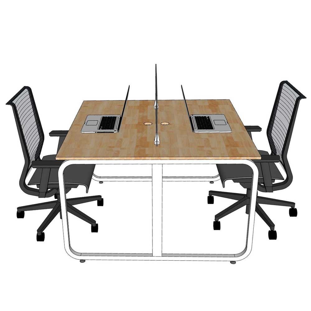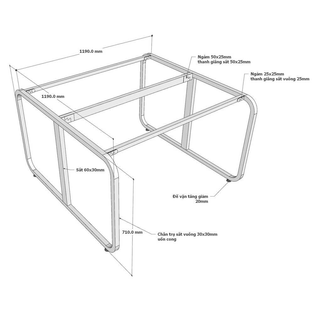 Mặt bàn kích thước 120x120cm, diện tích mỗi người sử dụng là 120x60cm đây là kích thước tiêu chuẩn cho bàn làm việc đơn một người ngồi. Chiều cao tiêu chuẩn bàn làm việc 75cm phù hợp với hầu hết các ghế văn phòng hiện nay.