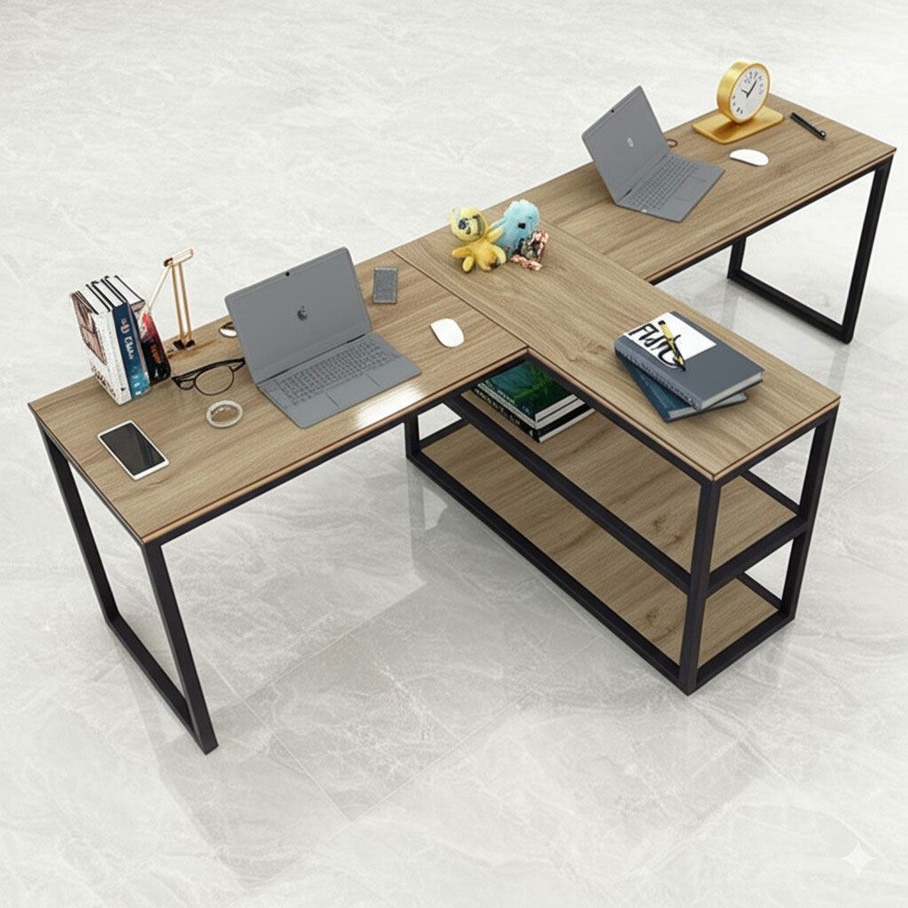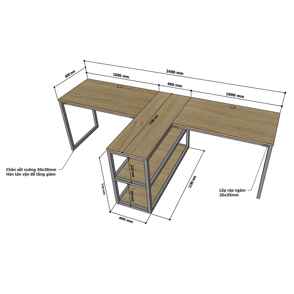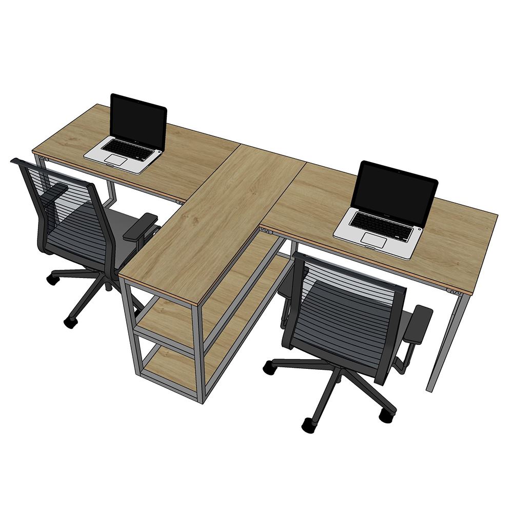 Bàn làm việc cụm 2 song song kết hợp kệ HBMN021 với thiết kế mang tính tiện ích cao khi kết hợp kệ với bàn làm giúp tăng không gian lưu trữ cũng như tính riêng tư cho mỗi người. Mặt bàn gỗ Plywood cốt gỗ tự nhiên bề mặt phủ melamin, bề mặt bàn được xử lý chống thấm nước và cong vênh. Kết hợp với mặt bàn Plywood là hệ khung chân sắt theo cơ cấu lắp ráp ngàm thông minh, tiện lợi nhưng vẫn đảm bảo độ chắc chắn, bên cạnh đó bề mặt chân sắt được phủ lớp sơn tĩnh điện cao cấp làm hạn chế ăn mòn hoá học giúp sản phẩm có độ bền cao hơn.