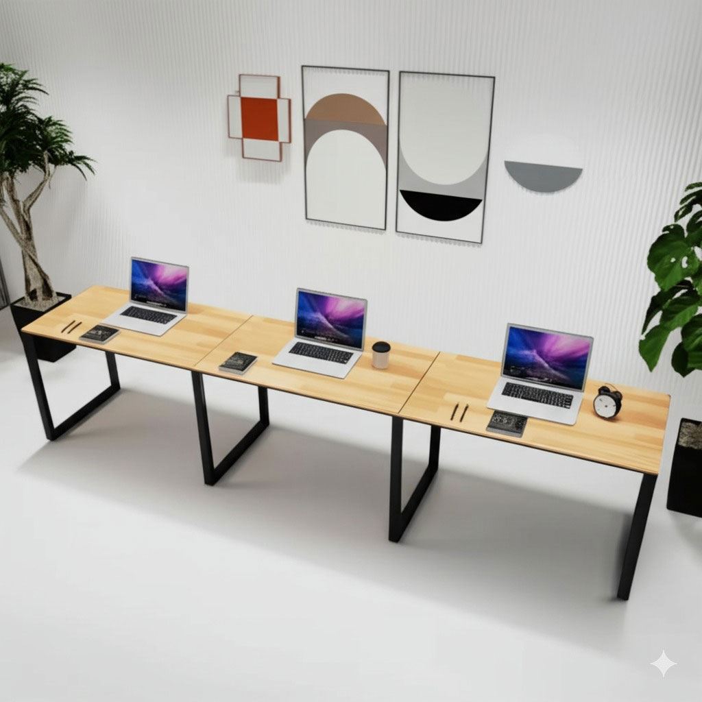 Bàn làm việc cụm 3 gỗ cao su hệ Rectang HBRT066 tiết kiệm hơn so với 3 bàn đơn với hệ 4 chân trụ Rectang concept lắp ráp ngàm sơn tĩnh điện chất lượng cao kết hợp với mặt bàn gỗ cao su tiêu chuẩn AA dày 17mm sơn Pu hoàn thiện hơn hẳn các loại gỗ công nghiệp khác, không sợ nước và không bị bong tróc với 5 màu sắc lựa chọn.