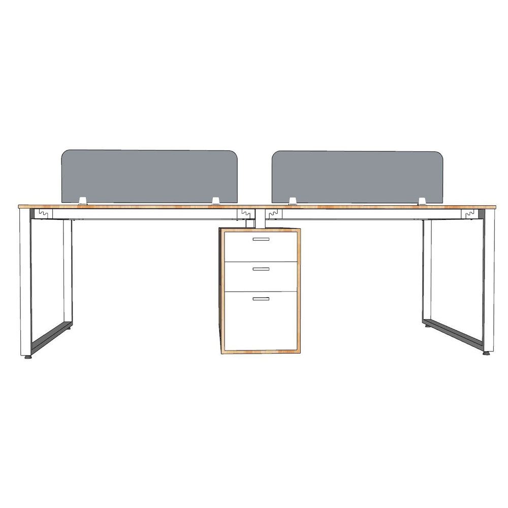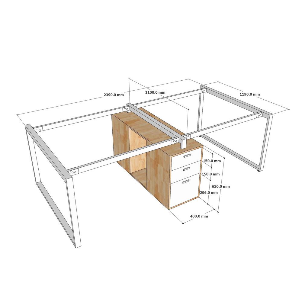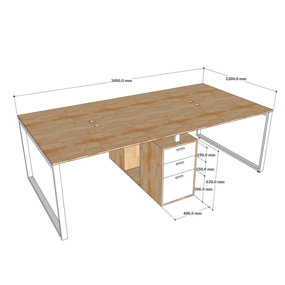 Bàn làm việc cụm 4 chân tủ gỗ tự nhiên chân sắt HBRT071 là mẫu bàn làm việc cụm 4 người ngồi chân kết hợp tủ để đồ 3 ngăn tiện lợi ngoài tăng không gian lưu trữ trưng bày hồ sơ, chân tủ còn mang đến vẻ đẹp mạnh mẽ uy nghiêm cho không gian làm việc của bạn. Vật liệu chính được sử dụng là gỗ cao su tự nhiên tiêu chuẩn AA dày 17mm được xử lý và hoàn thiện chống thấm nước, vân gỗ màu sắc đẹp mắt kết hợp cùng chân sắt hộp 25x50mm, loại dày 1.2mm và rất chắc chắn, bề mặt khung chân sắt được phủ lớp sơn tĩnh điện chống rỉ sét, đảm bảo độ bền cao.