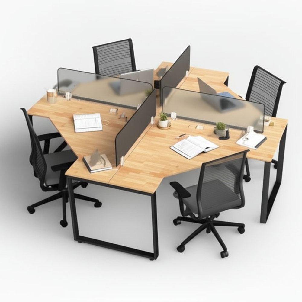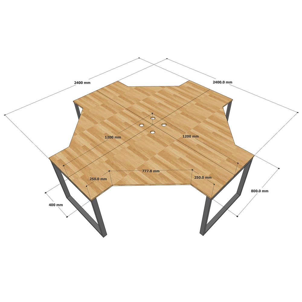 Bàn làm việc cụm 4 gỗ cao su chân sắt BCVP001 với mặt bàn gỗ cao su dày 17mm tiêu chuẩn AA được xử lý và hoàn thiện chống thấm nước, gỗ cao su tự nhiên dẻo dai bền bỉ theo thời gian kết hợp khung chân sắt hộp dày 1.2mm chắc chắn, bề mặt sắt phủ lớp sơn tĩnh điện cao cấp giúp bạn yên tâm sử dụng trong thời gian dài. Đặc biệt khung chân được lắp ráp cơ cấu ngàm cực chắc chắn mà vẫn dễ dàng tháo lắp, di dời khi cần rất tiện lợi.