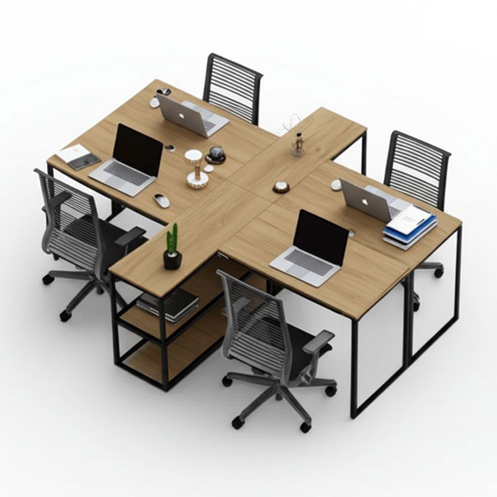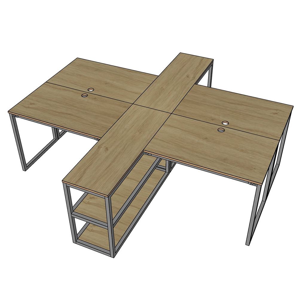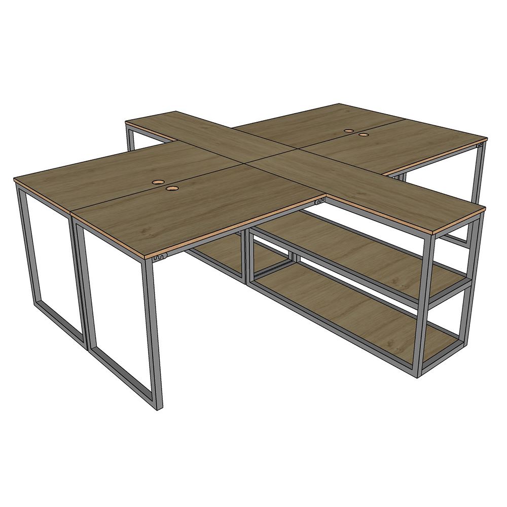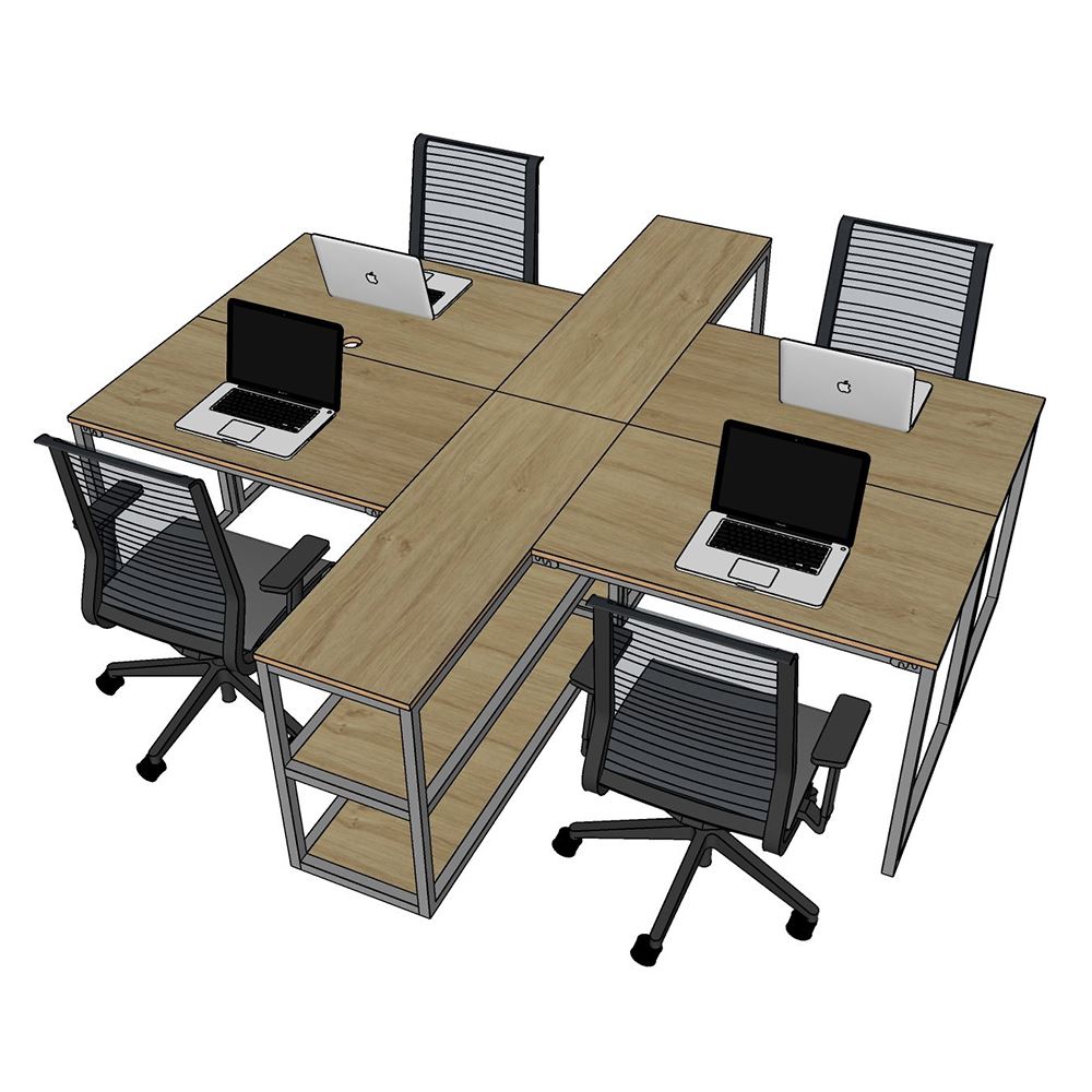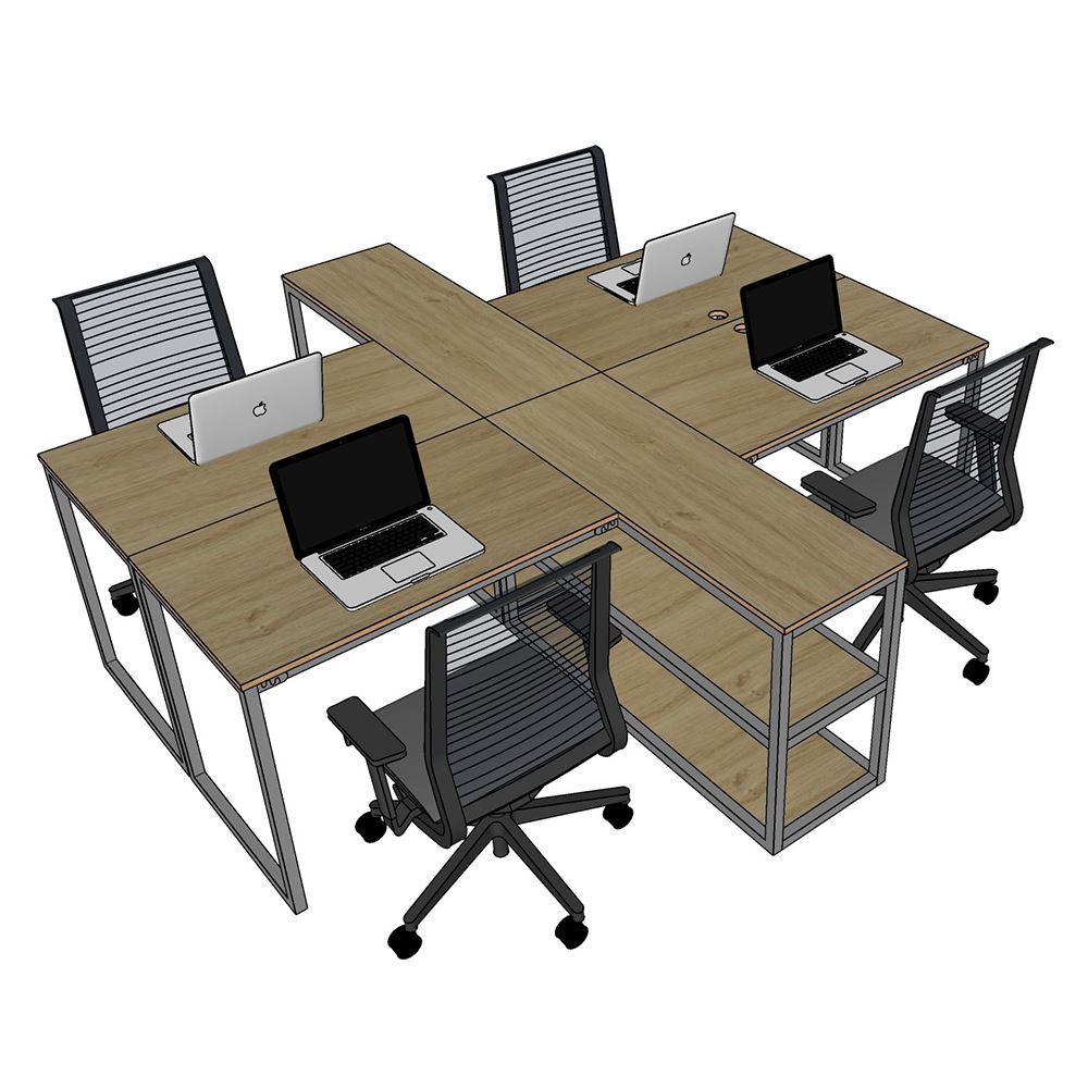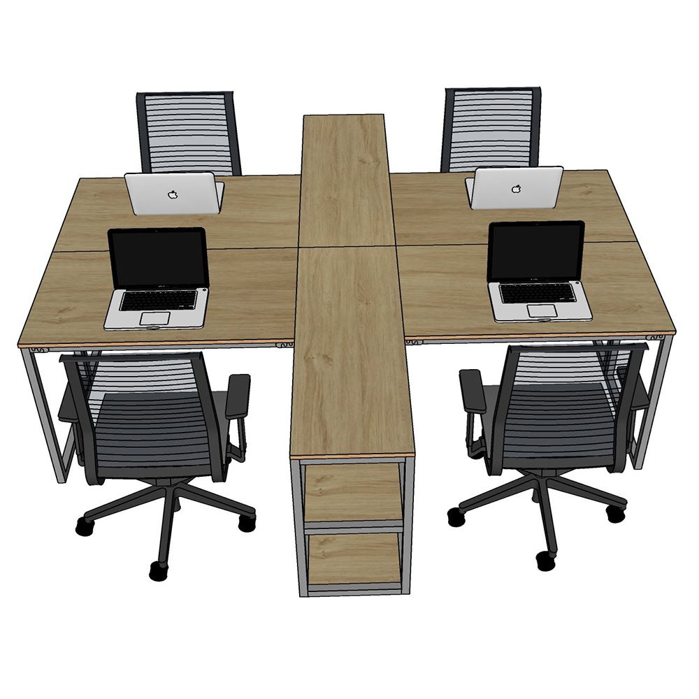 Bàn làm việc cụm 4 kết hợp kệ HBMN022 với thiết kế mang tính tiện ích cao khi kết hợp kệ với bàn làm giúp tăng không gian lưu trữ cũng như tính riêng tư cho mỗi người. Mặt bàn gỗ Plywood cốt gỗ tự nhiên bề mặt phủ melamin, bề mặt bàn được xử lý chống thấm nước và cong vênh. Kết hợp với mặt bàn Plywood là hệ khung chân sắt theo cơ cấu lắp ráp ngàm thông minh, tiện lợi nhưng vẫn đảm bảo độ chắc chắn, bên cạnh đó bề mặt chân sắt được phủ lớp sơn tĩnh điện cao cấp làm hạn chế ăn mòn hoá học giúp sản phẩm có độ bền cao hơn.