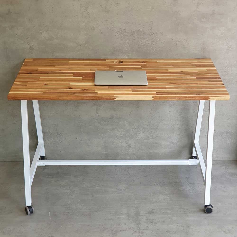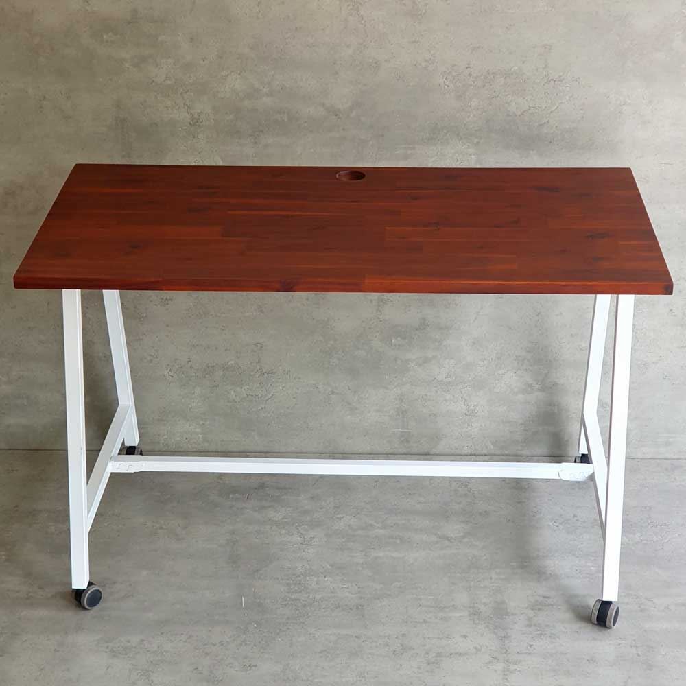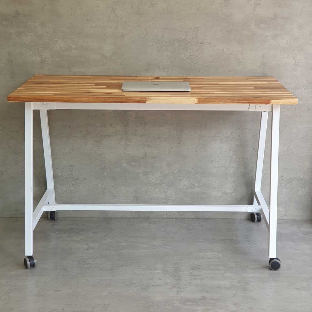 Bàn làm việc di động FOS 120x60cm FOS012 với mặt bàn gỗ tràm dày dặn, chịu lực tốt và có đường vân gỗ mang đậm chất mộc. Bề mặt gỗ cao su được xử lý PU chống thấm, sấy khô công nghiệp, giúp cho chất lượng gỗ cứng cáp, chống thấm nước, bền bỉ trong quá trình sử dụng. Hệ khung chân bàn sử dụng cơ cấu lắp ráp giúp mang lại tính linh hoạt khi cần tháo giỡ và di chuyển. Bàn còn được trang bị bộ bánh xe di động làm bằng nhựa PU dày chịu lực tốt, có cơ cấu chịu lực và linh hoạt. Bề mặt chân bàn được phủ sơn tĩnh điện giúp mang lại tính thẩm mỹ cho sản phẩm, đồng thời giúp chống gỉ sét mang lại độ bền bỉ trong quá trình sử dụng.