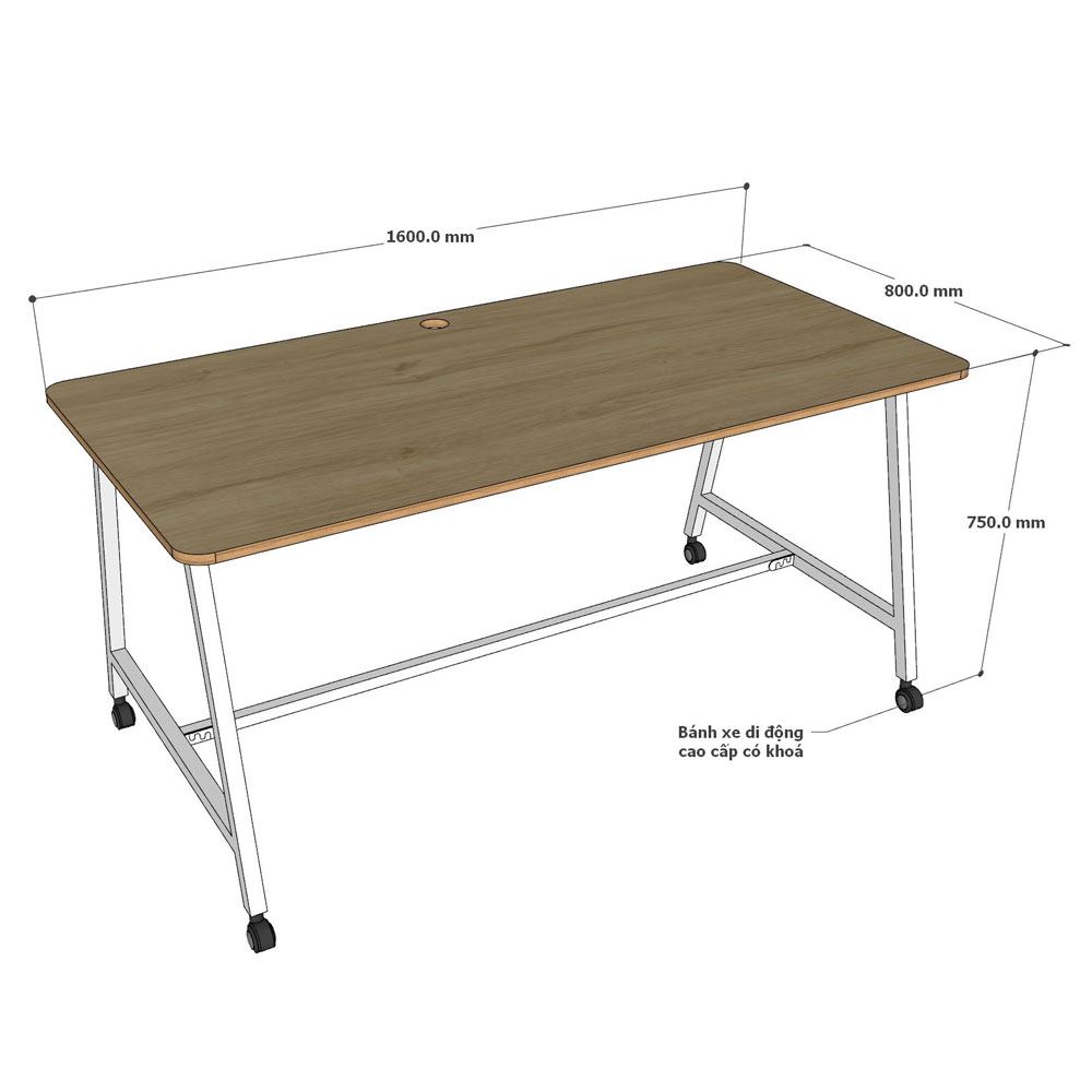 Bàn làm việc di động FOS 160x80cm FOS005 với mặt bàn gỗ Plywood cốt gỗ tự nhiên bề mặt phủ melamin vân sồi đẹp mắt, bề mặt bàn được xử lý chống thấm nước và cong vênh, màu gỗ tự nhiên đẹp mắt mang đến sự thân thiện, gần gũi cho không gian làm việc của bạn. Hệ khung chân bàn sử dụng cơ cấu lắp ráp giúp mang lại tính linh hoạt khi cần tháo giỡ và di chuyển. Bàn còn được trang bị bộ bánh xe di động làm bằng nhựa PU dày chịu lực tốt, có cơ cấu chịu lực và linh hoạt. Bề mặt chân bàn được phủ sơn tĩnh điện giúp mang lại tính thẩm mỹ cho sản phẩm, đồng thời giúp chống gỉ sét mang lại độ bền bỉ trong quá trình sử dụng.