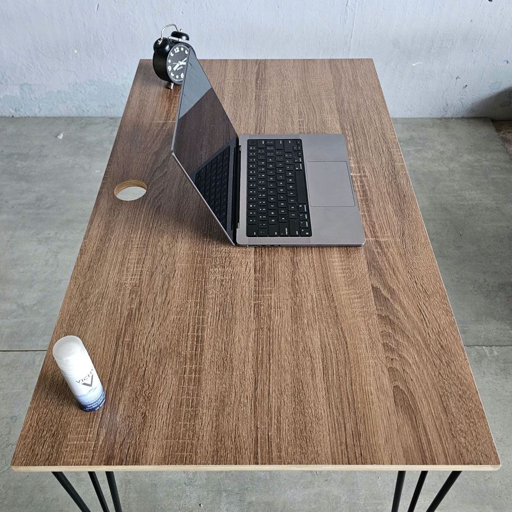 Bàn làm việc đơn giản HOBP028 với mặt bàn là gỗ Plywood có lõi bản chất là gỗ tự nhiên được lạng mỏng từ gỗ bạch dương và gỗ tràm ... với bề mặt phủ Melamin kết hợp cùng chân sắt Hairpin được gia công tỉ mỉ từng chi tiết tạo thành những sản phẩm làm hài lòng kể cả những khách hàng khó tính nhất. Kiểu dáng bắt mắt, mặt bàn kích thước 100x60cm giúp bạn có thể bố cục đồ đạc một cách dễ dàng.
