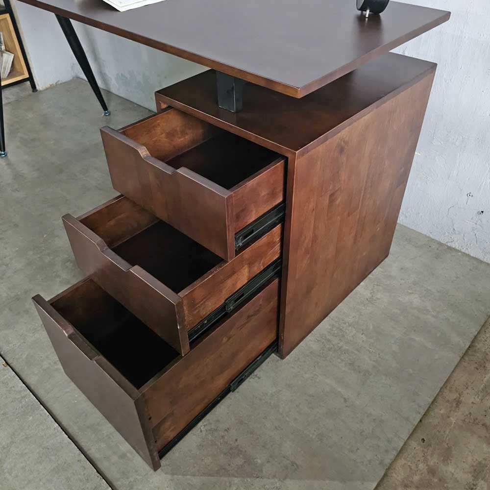 Với thiết kế chân sắt hệ CONE độc đáo, bàn làm việc HBCO065 mang đến một diện mạo vừa thanh lịch, vừa hiện đại cho không gian làm việc của bạn. Sự kết hợp hài hòa giữa chân sắt chắc chắn và mặt bàn gỗ tự nhiên tạo nên một tổng thể cân bằng, tinh tế. Hệ tủ với 3 ngăn kéo rộng rãi, giúp bạn dễ dàng phân loại và lưu trữ tài liệu, hồ sơ một cách ngăn nắp, tiết kiệm tối đa diện tích.