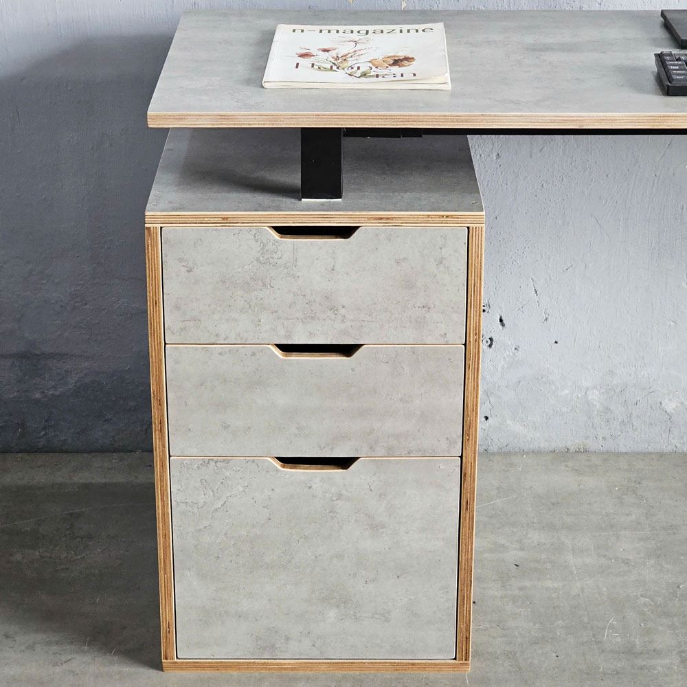 Thiết kế thông minh với phần tủ hông, không chỉ cung cấp không gian lưu trữ rộng rãi mà còn đóng vai trò như một chân bàn vững chãi, tạo nên một tổng thể hài hòa, cân đối. Ba ngăn kéo rộng rãi là nơi lý tưởng để cất giữ sách vở, tài liệu, đồ dùng cá nhân, giúp góc làm việc luôn gọn gàng, ngăn nắp. Thay vì phải bố trí thêm một chiếc tủ đựng đồ cồng kềnh, bạn đã có ngay một giải pháp lưu trữ tích hợp ngay bên dưới chiếc bàn làm việc của mình.
