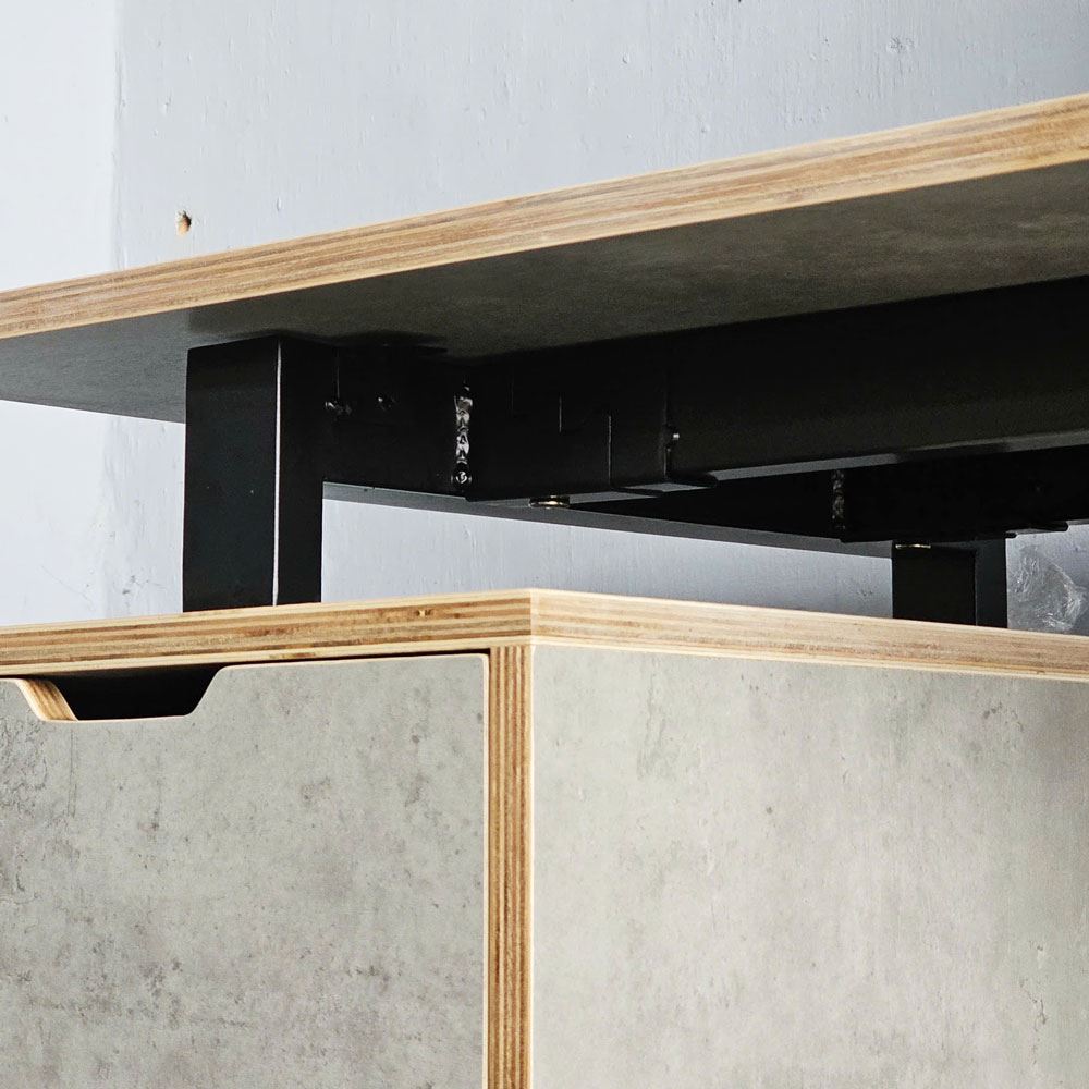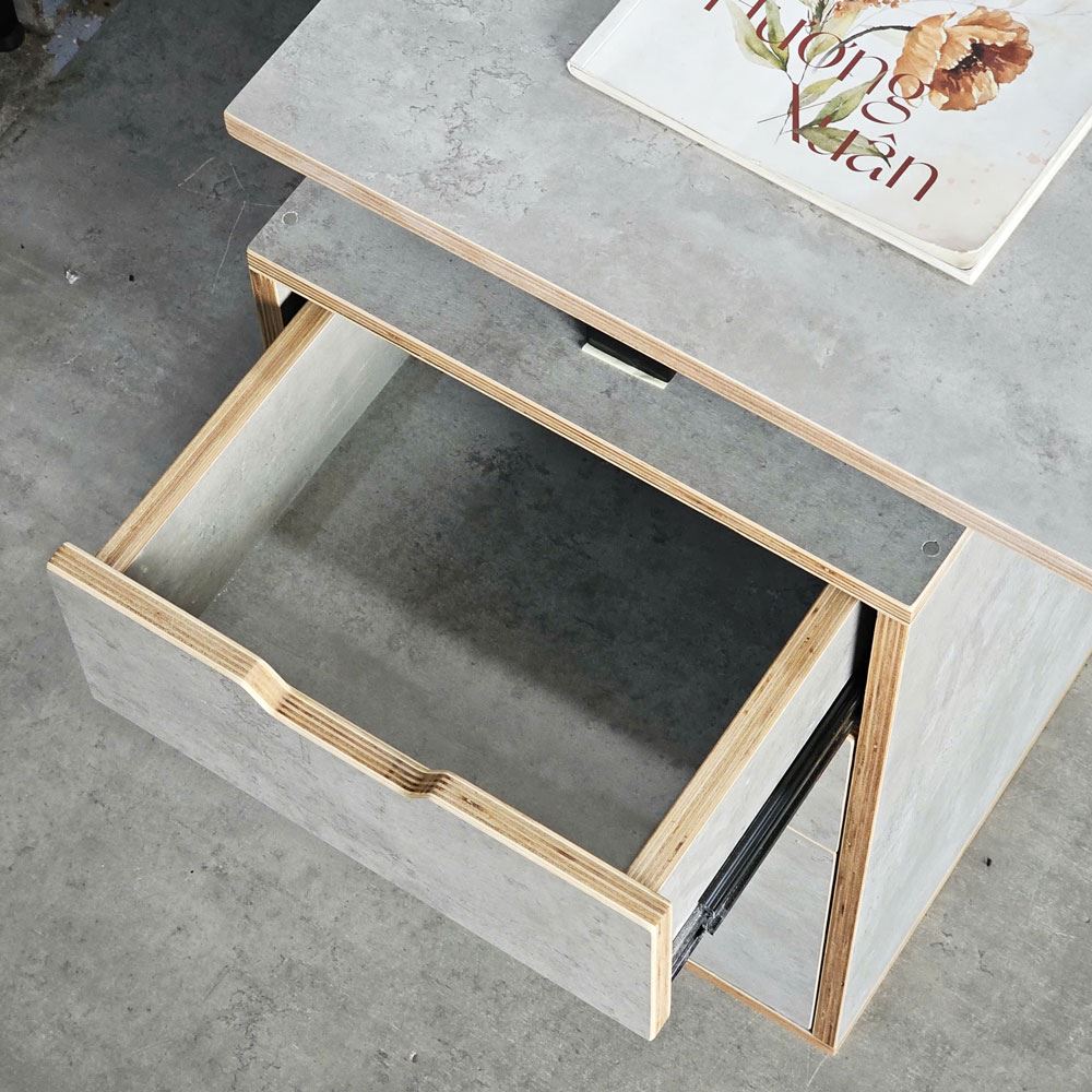 Hơn nữa, cơ cấu lắp ráp ngàm linh hoạt giúp việc vận chuyển và lắp ráp trở nên vô cùng dễ dàng. Chỉ với vài thao tác đơn giản, bạn đã có thể tự mình lắp ráp chiếc bàn một cách nhanh chóng. Mặt bàn và tủ được làm từ chất liệu plywood cao cấp, đã qua xử lý chống thấm. Plywood là một loại vật liệu được tạo thành từ nhiều lớp gỗ tự nhiên mỏng ép chồng lên nhau, giúp tăng độ bền và khả năng chịu lực. Việc xử lý chống thấm giúp bàn không bị cong vênh, mối mọt khi tiếp xúc với nước hay độ ẩm.