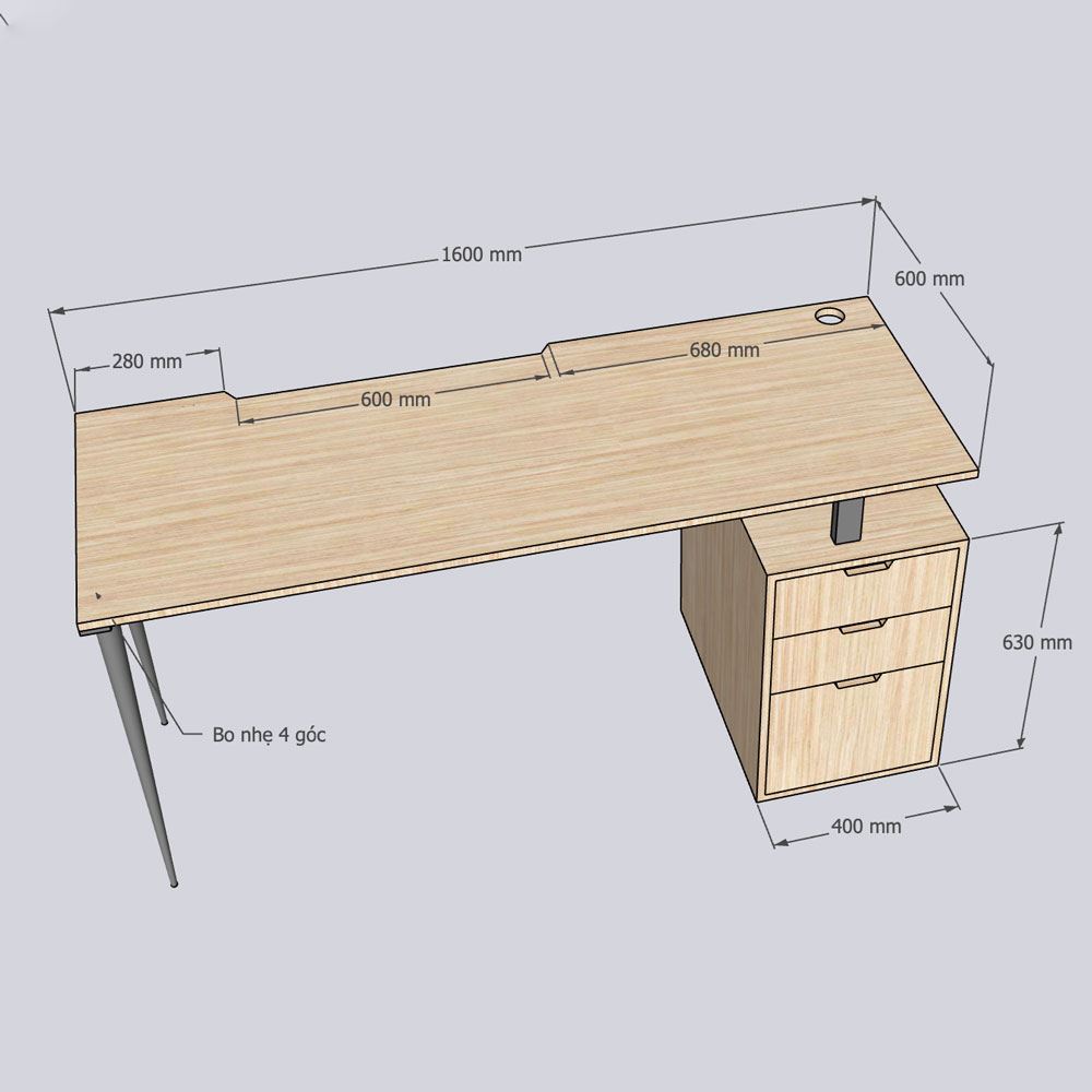 Bàn làm việc gác tủ 160x60cm gỗ cao su hệ CONE HBCO072