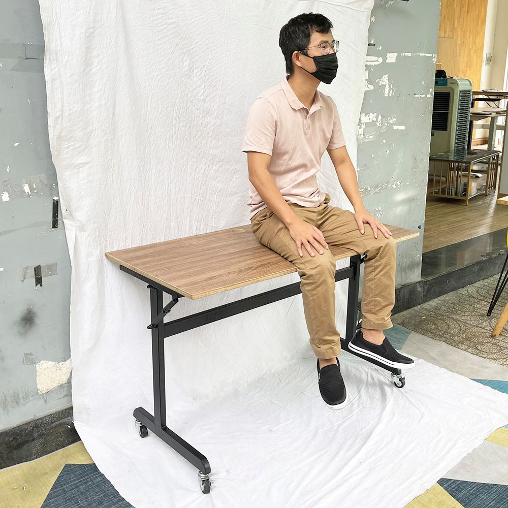 Bàn làm việc gấp gọn chân có bánh xe gỗ Plywood phủ melamin