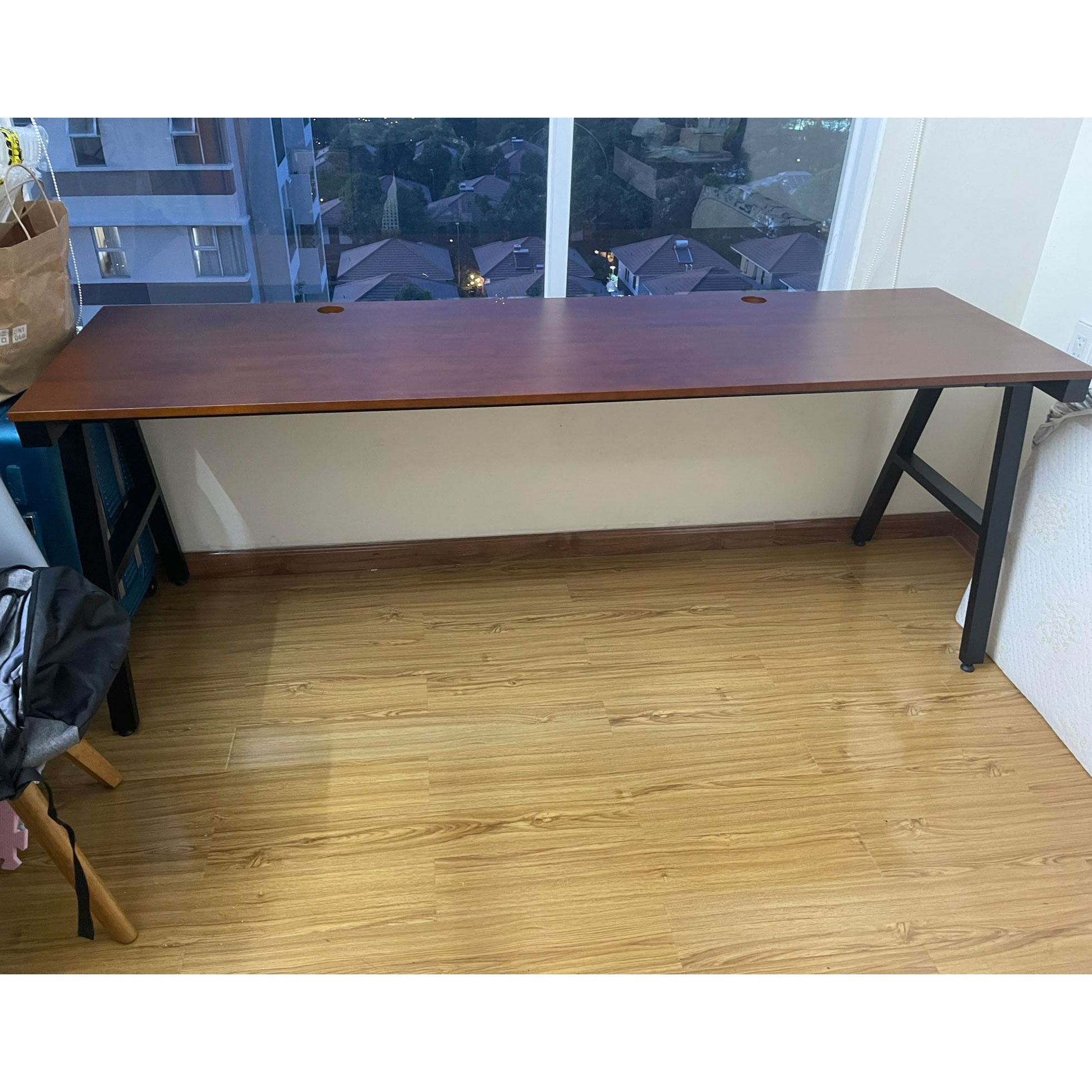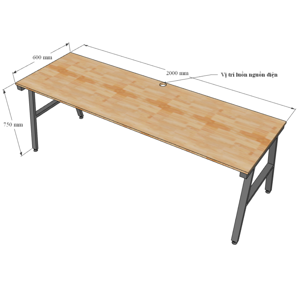 Bàn làm việc mặt bàn gỗ cao su chân sắt lắp ráp kích thước 200x60cm