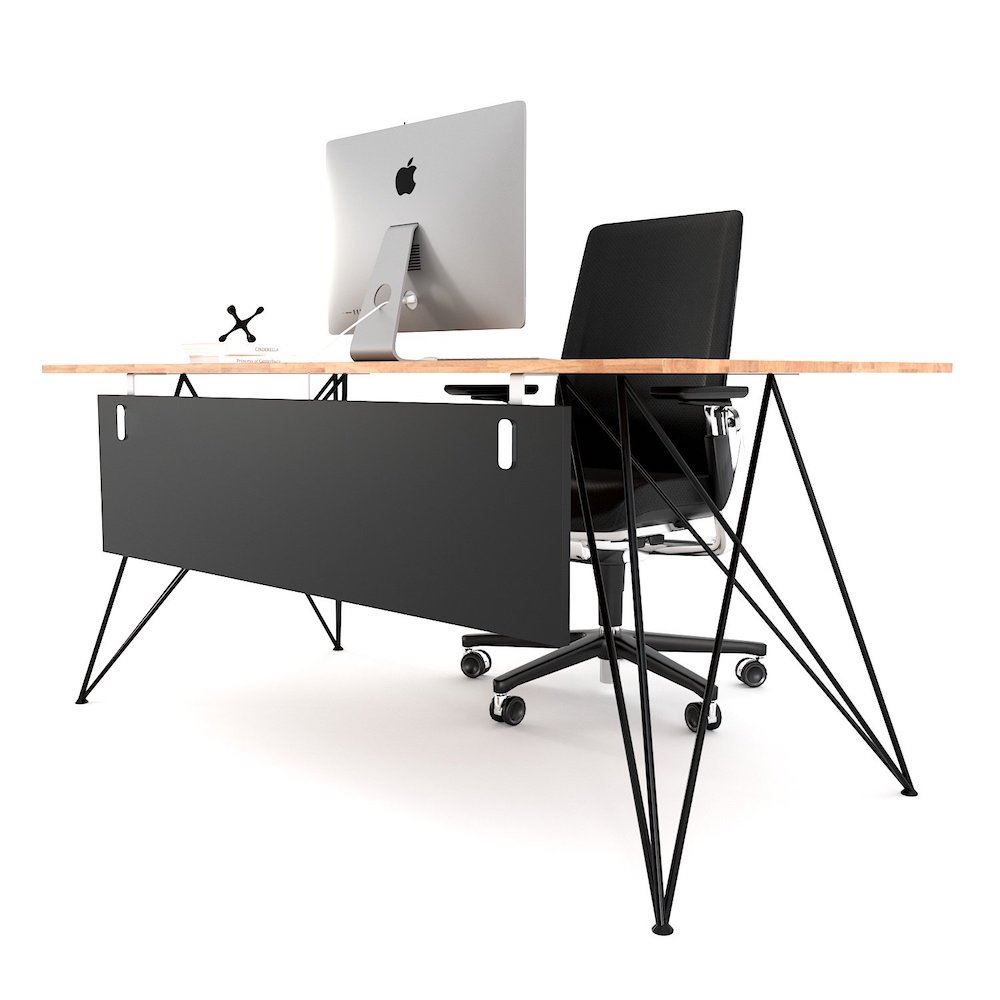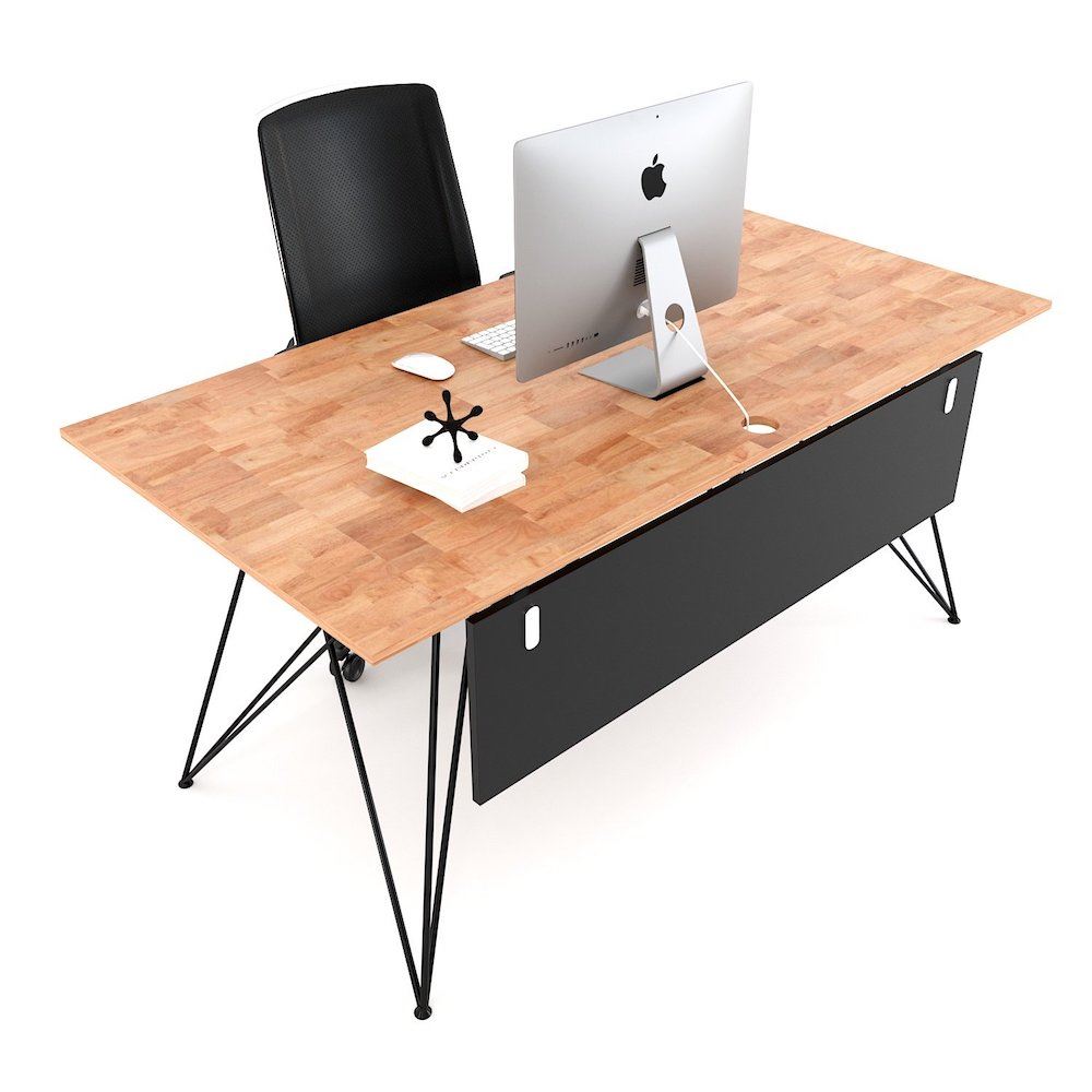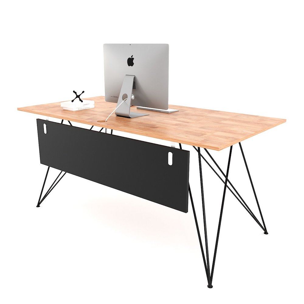 Bàn làm việc 140x80cm có tấm chắn chân sắt sơn tĩnh điện BGD68061 với mặt bàn được làm từ gỗ cao su tự nhiên, dày 17m sơn PU hoàn thiện chống thấm nước, cong vênh kết hợp khung chân sắt phi có kiểu dáng độc đáo được gia cầu kỳ và tỉ mỉ đảm bảo sự chắc chắn, bề mặt sắt được phủ lớp sơn tĩnh điện cao cấp mang đến bộ chân bàn có nước sơn đẹp mắt và chống rỉ sét đảm bảo độ bền cao.