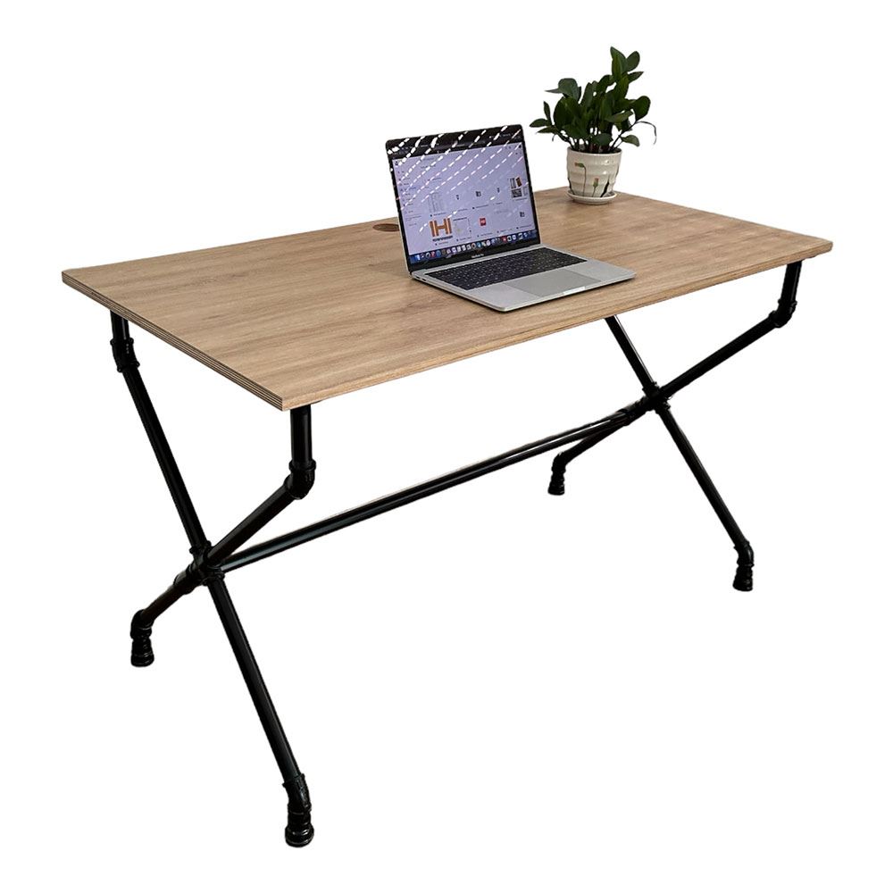 Bàn làm việc gỗ Plywood chân ống nước chữ X - HBON010 điểm nhấn của chiếc bàn nằm ở chân bàn, với kiểu chân ống nước tiện ren lắp ráp từ các phụ kiện ống nước trong phòng cháy chữa cháy cùng với mặt bàn gỗ Plywood phủ Melamin với 3 vân màu lựa chọn, Gỗ plywood siêu bền, không sợ nước và rất cứng tải trọng lên đến 100kg nên quý khách có thể an tâm sử dụng với nhiều máy móc, thiết bị trên bàn.